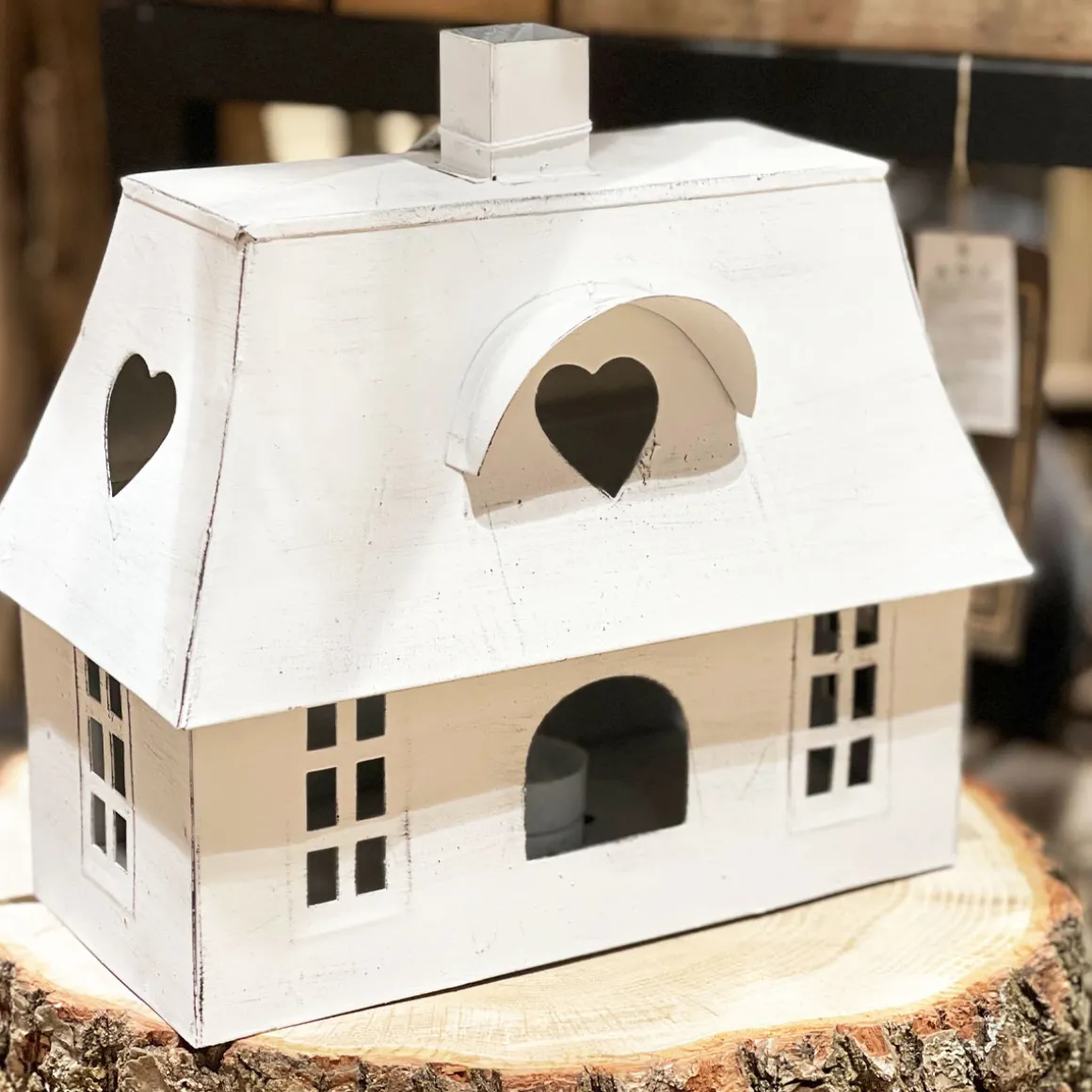 Deko Windlicht Haus, Haus mit Walmdach, antikweiß, used look, 23x22cm, Metall