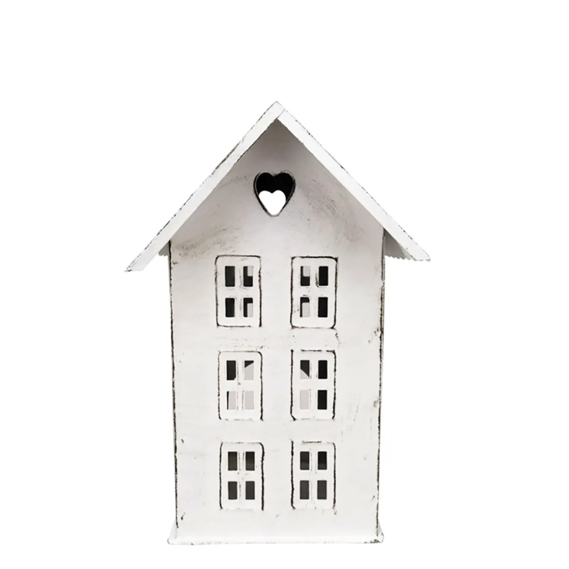 Deko Windlicht, Haus mit Herz, antikweiß, used look, 15x21cm, Metall