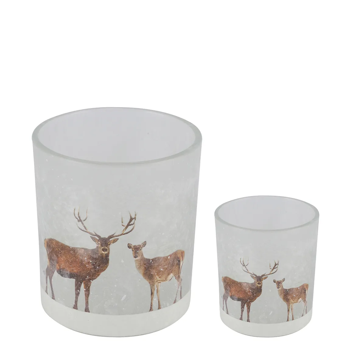 Deko Windlicht Hirsch und Reh im Schnee, Glaswindlicht Winter, 9cm