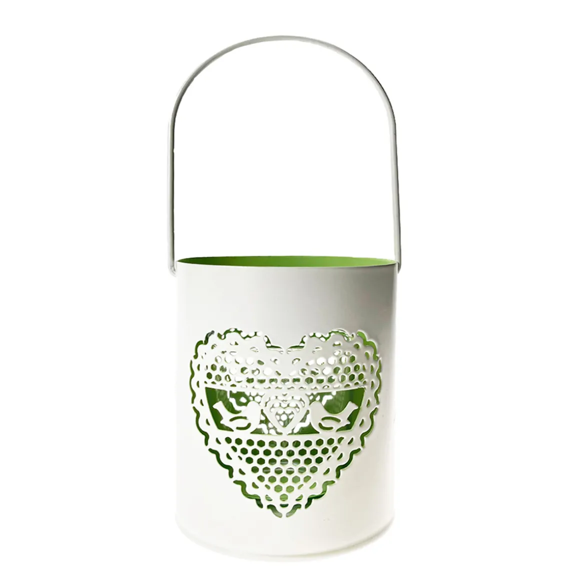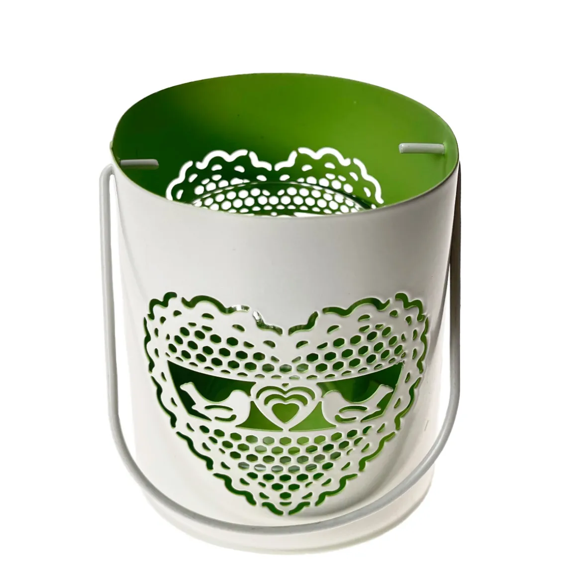 Deko Windlicht Hochzeit, Metallwindlicht mit Herz und Vögel, 7x10cm
