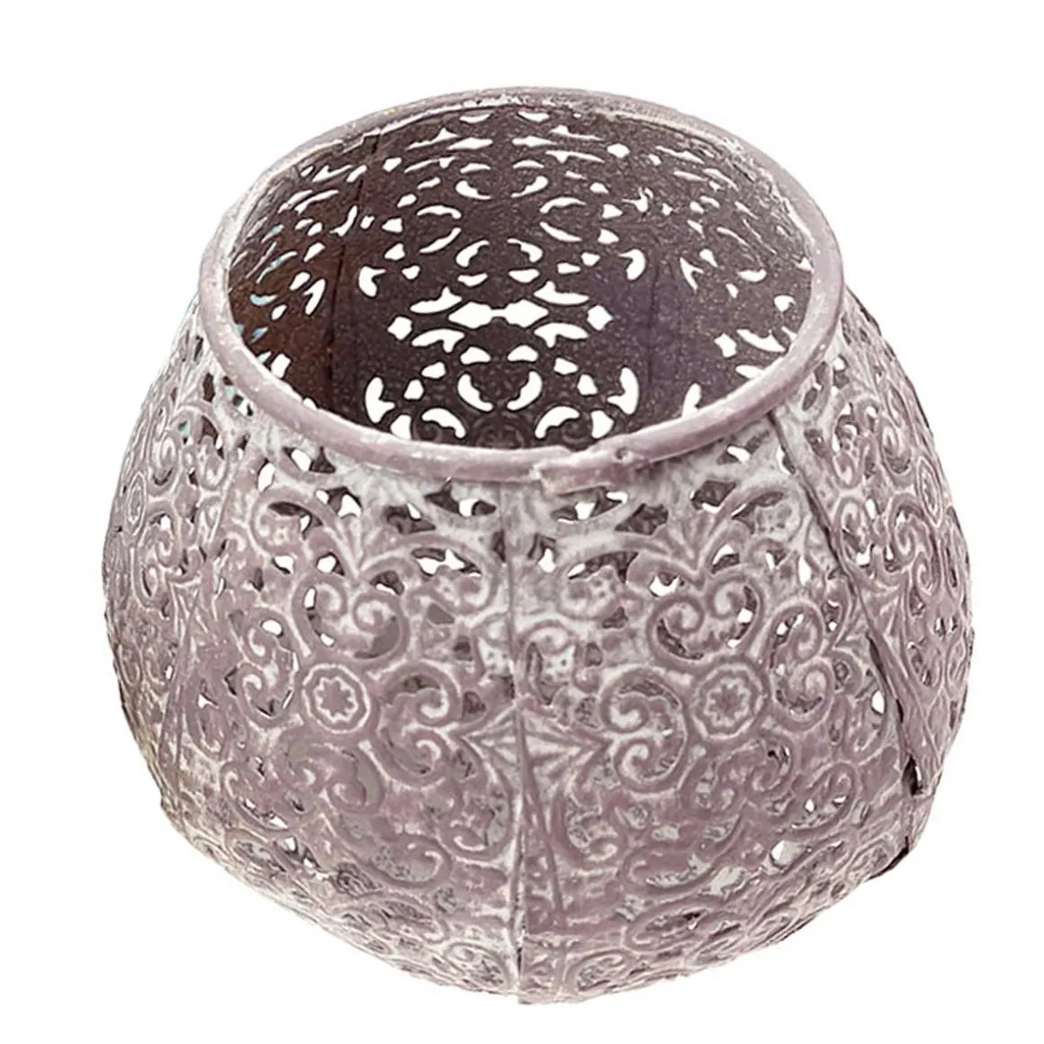 Deko Windlicht Ornament, Kerzenhalter flieder, shabby chic, 10x8cm, Metall