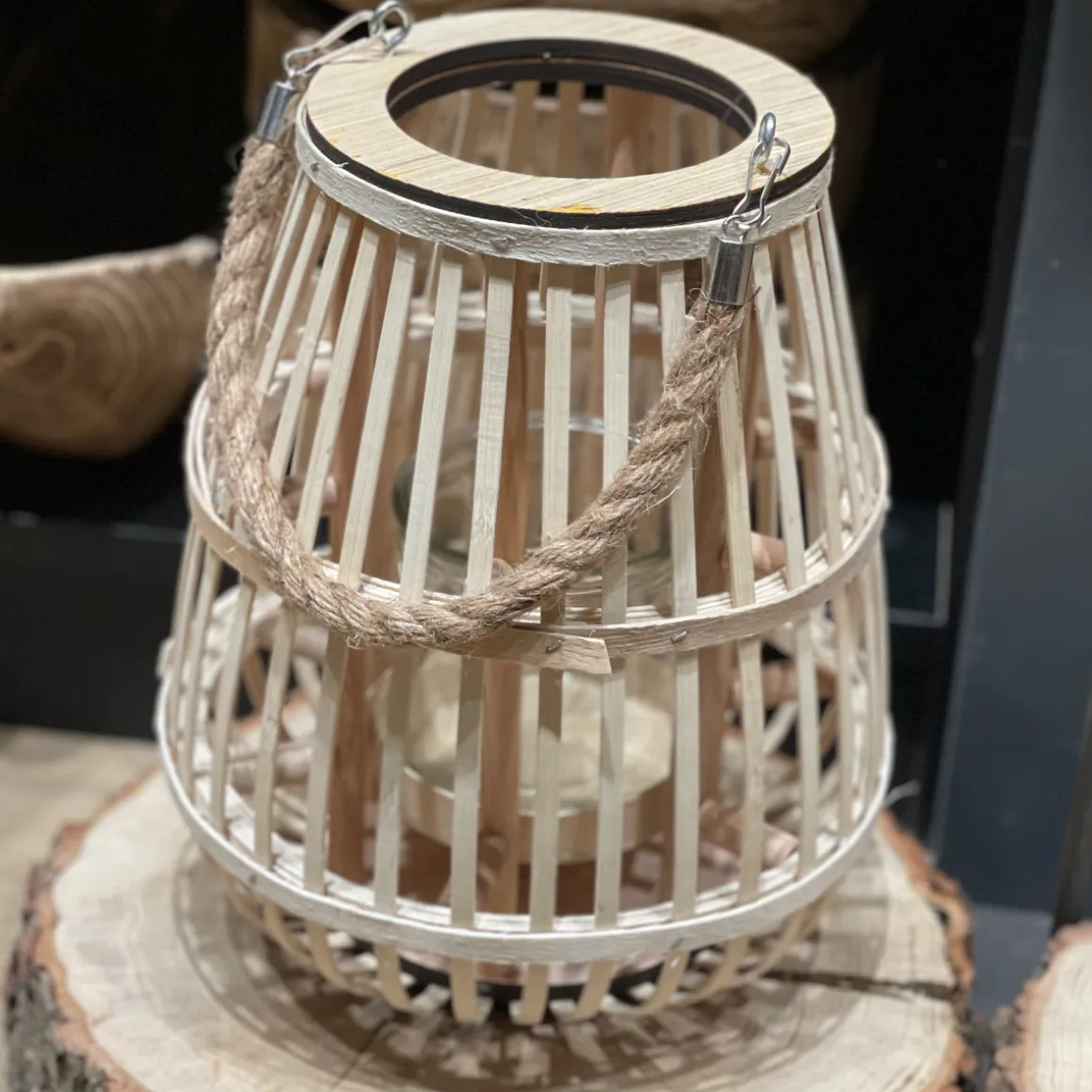 Deko Windlicht Rattan natur, Korbwindlicht Boho mit Henkel, 31cm
