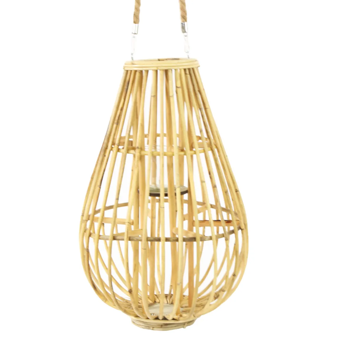 Deko Windlicht Rattan natur, Korbwindlicht Boho mit Henkel, 50cm