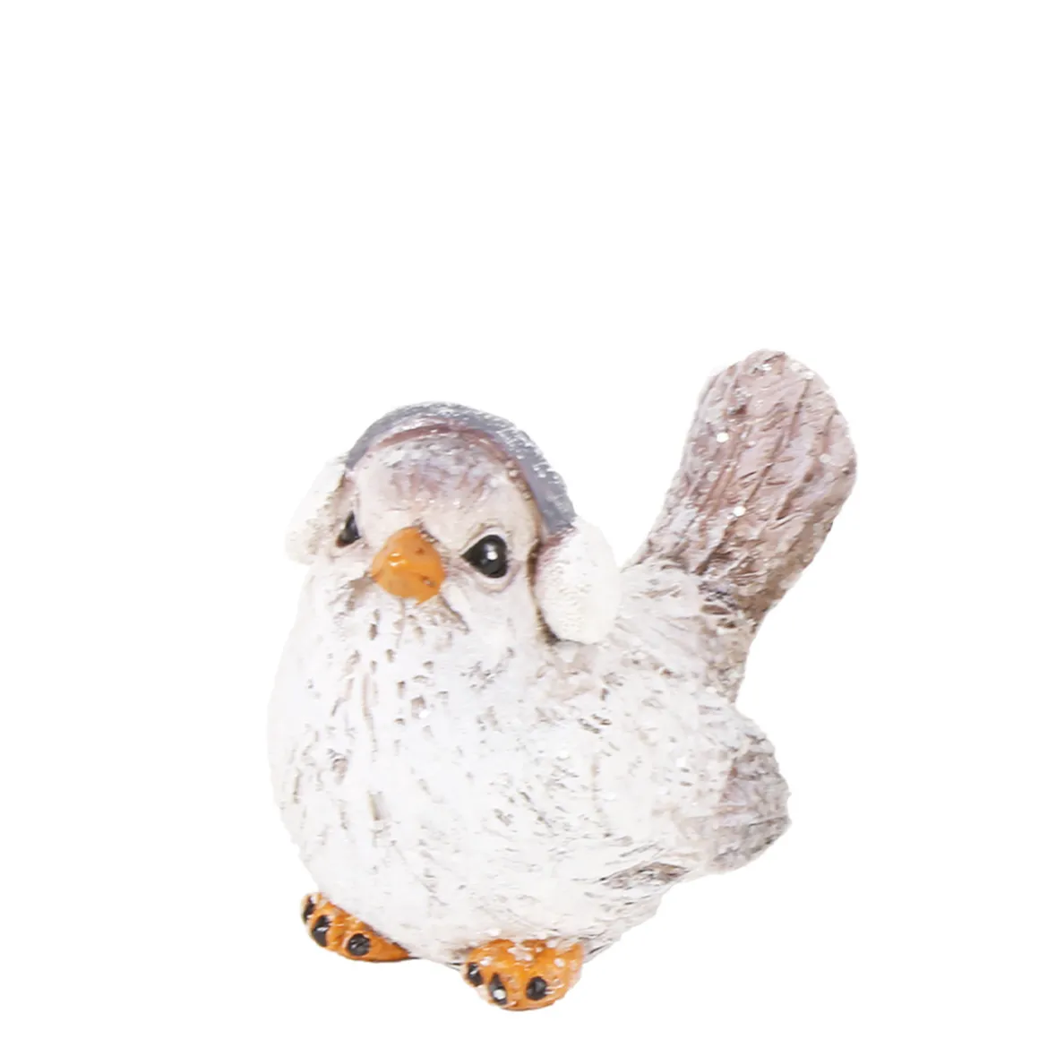 Produktinformationen „Deko Wintervogel beschneit, Vogel mit Ohrschützer und Glimmer, 9x8cm, Keramik“