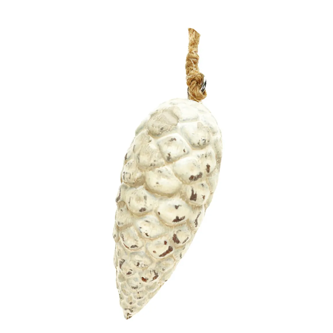Deko Zapfen, Tannenzapfen cremeweiß used look, Zapfenhänger aus Keramik, 13cm