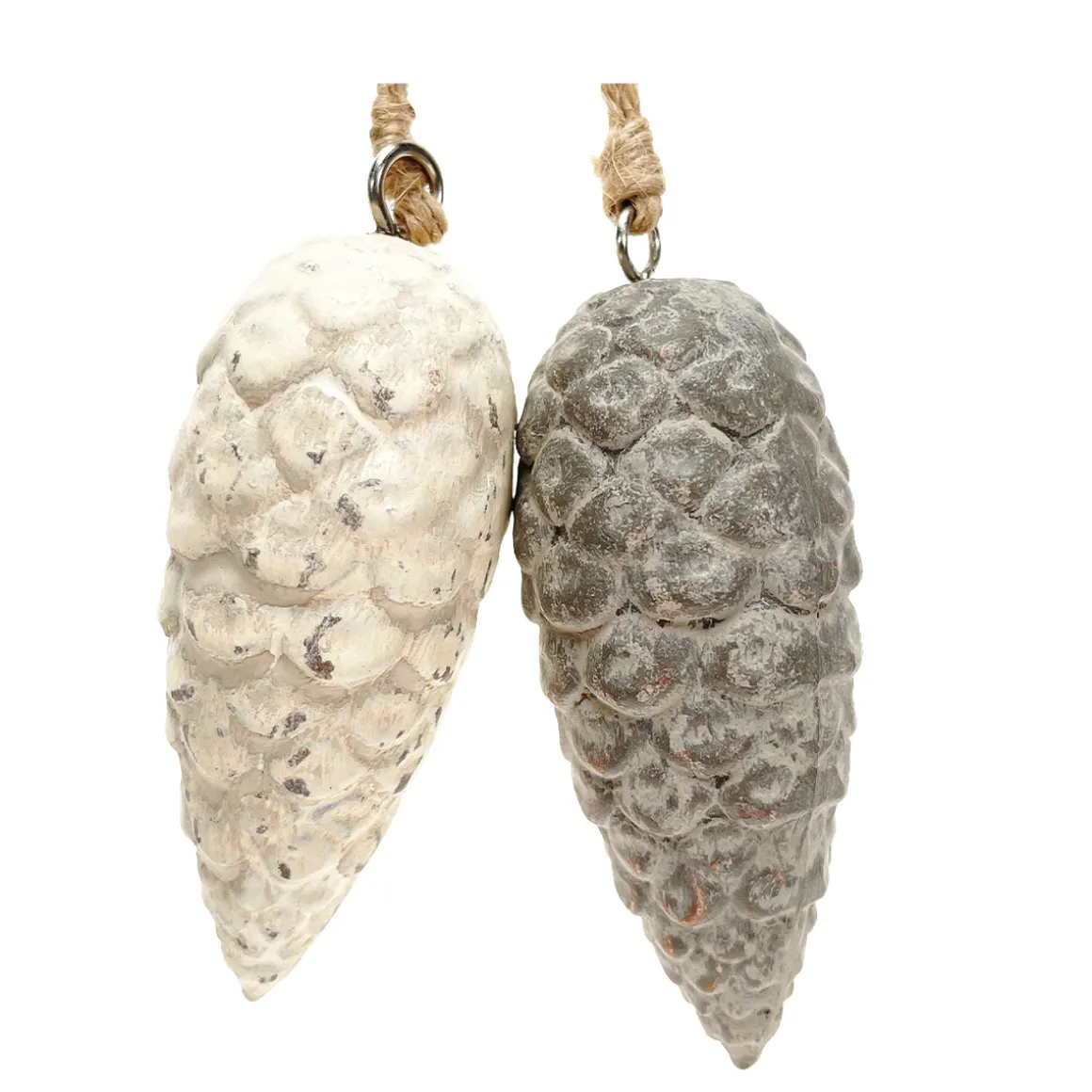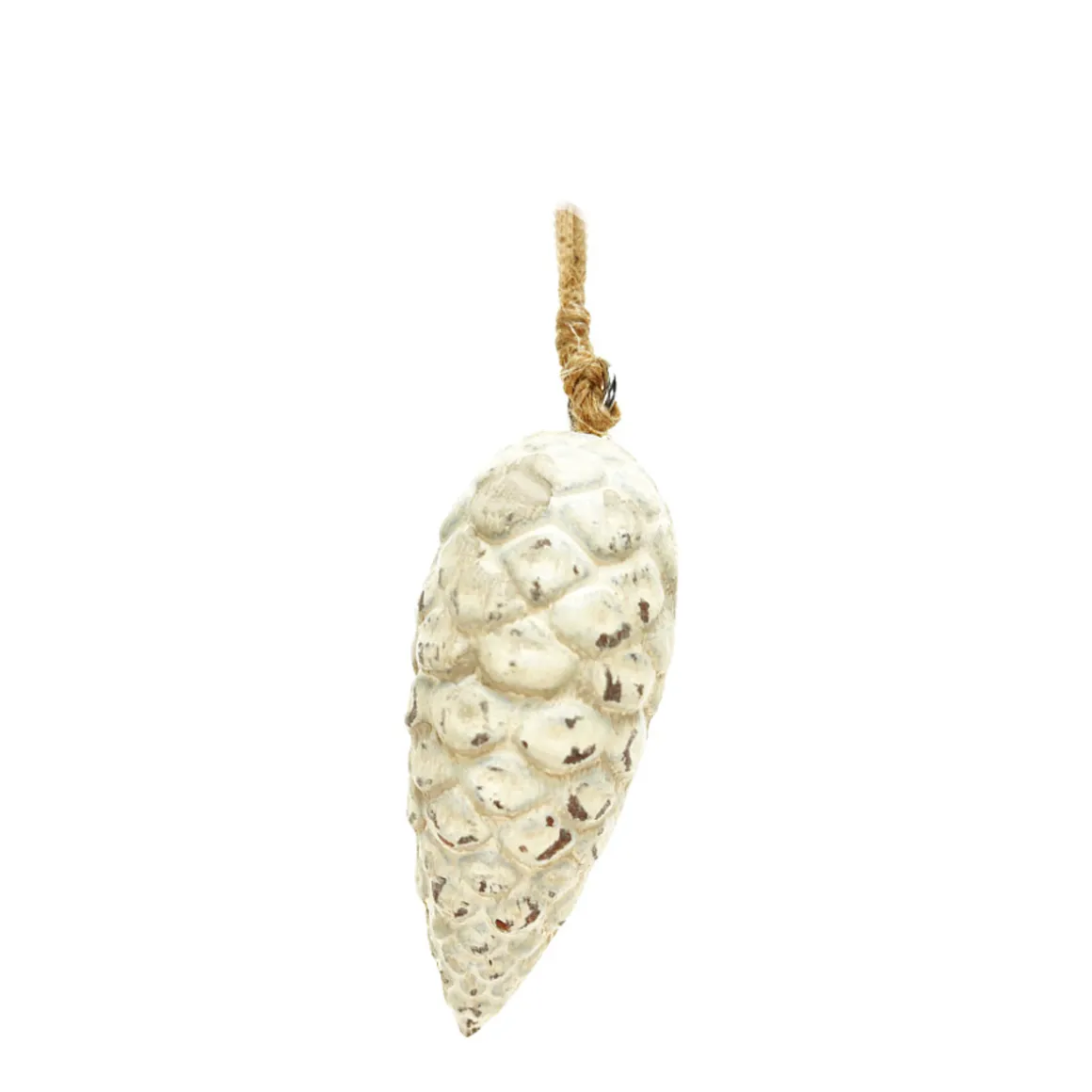 Deko Zapfen, Tannenzapfen cremeweiß used look, Zapfenhänger aus Keramik, 8cm