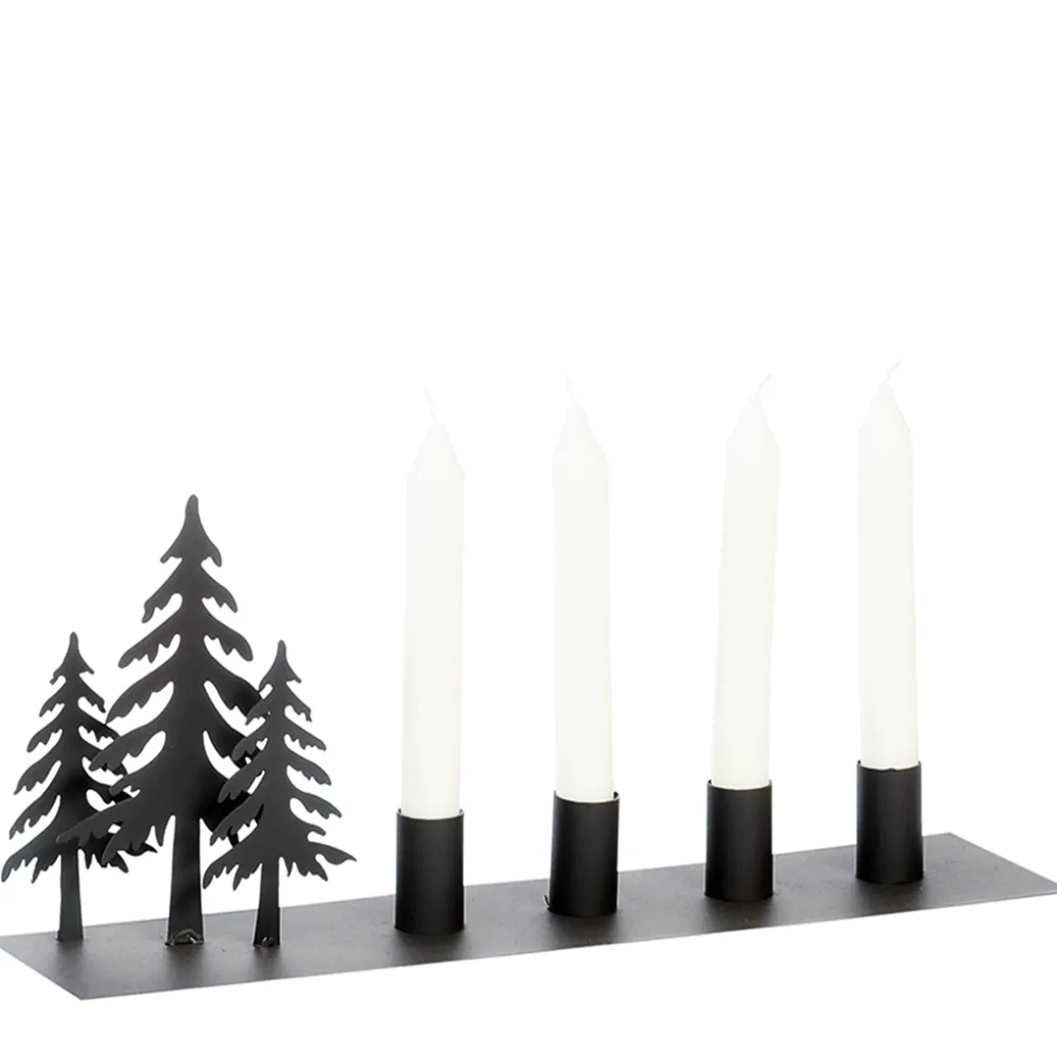 Eisen Kerzenständer Tannen, Advents Kerzenhalter für Stabkerzen, 15x40cm, WMG Grünberger