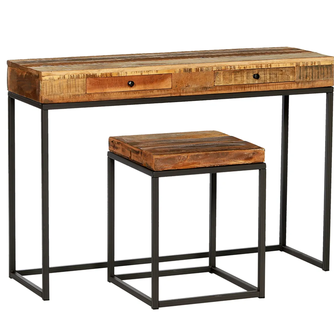 Eisen-Naturholz Konsole Victoria, rustikale Altholz Konsole mit 2 Schubladen auf Eisengestell, 75x110cm, WMG Grünberger