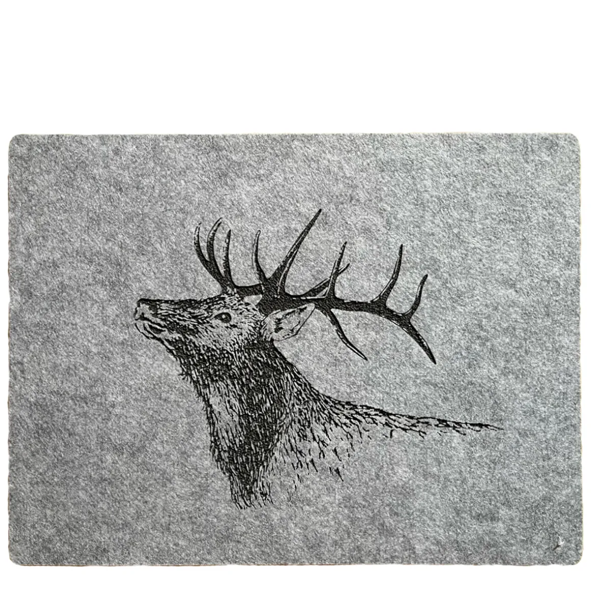 Filz Tischset Hirsch, röhrender Hirsch, grau-schwarz, 45x35cm