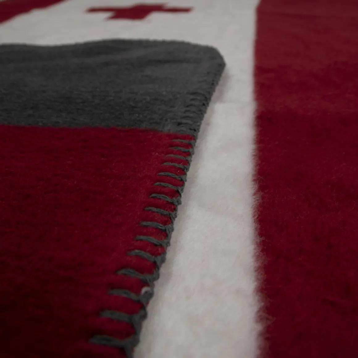 Die weiche Wendedecke zeigt auf beiden Seiten das klassische Schweizer Kreuz in kräftigem Rot und zeitlosem Grau und bringt damit ein alpines, heimeliges Gefühl in jedes Zuhause.
