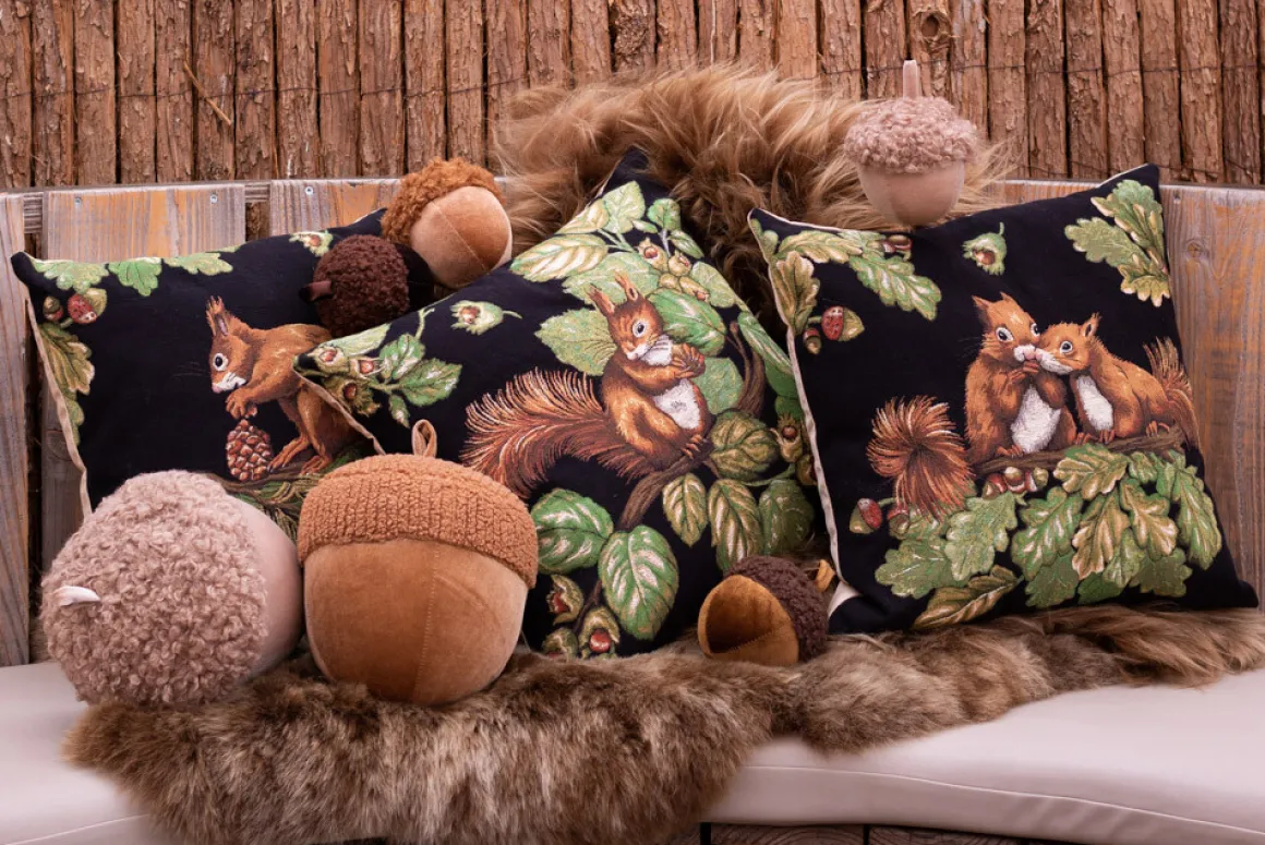 Gobelin Kissen Eichhörnchen, Eichhörnchen mit Tannenzapfen, schwarz, 45x45cm, Mars & More