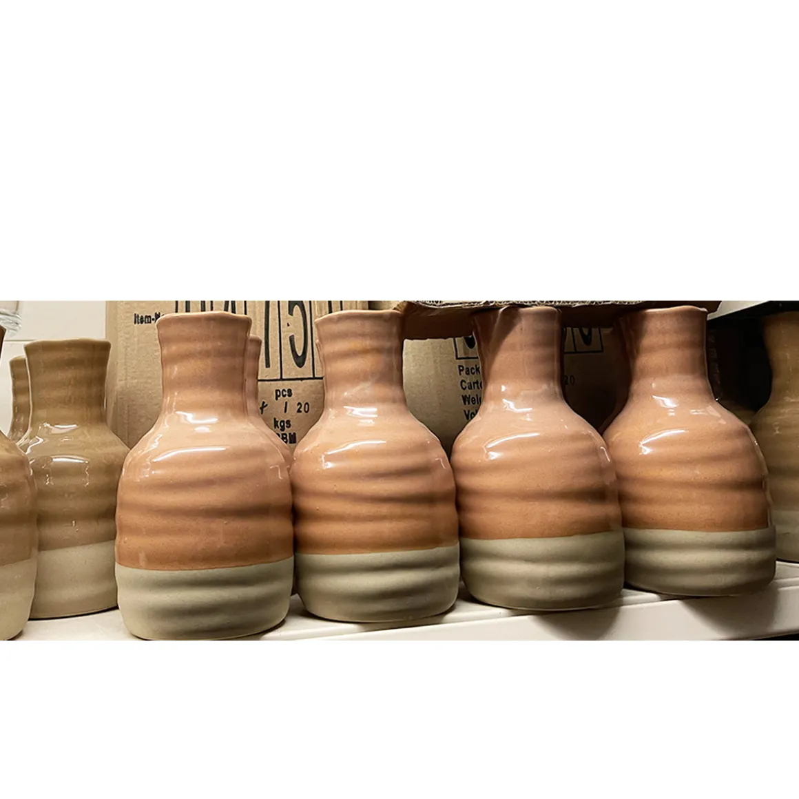 Keramik Blumenvase 2-farbig mit Rillen, Keramikvase apricot-beige, 11x20cm