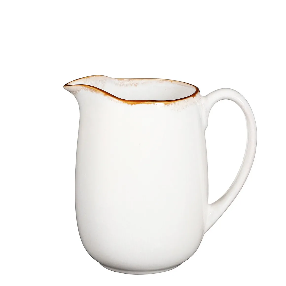 Produktinformationen „Keramik Kanne mit Henkel, Tabo, handgefertigt, weiß, Rand braun, 16x10cm, Mica“