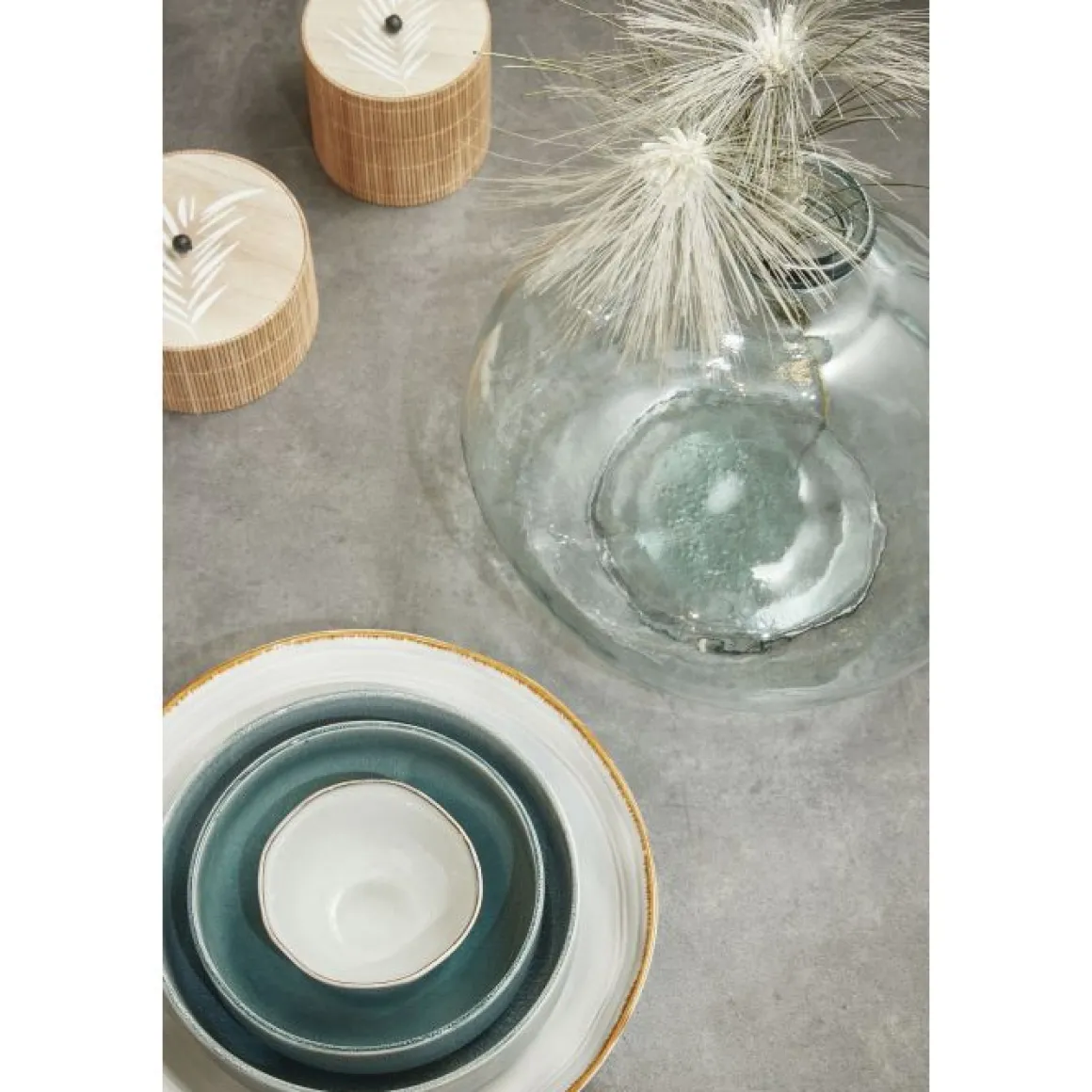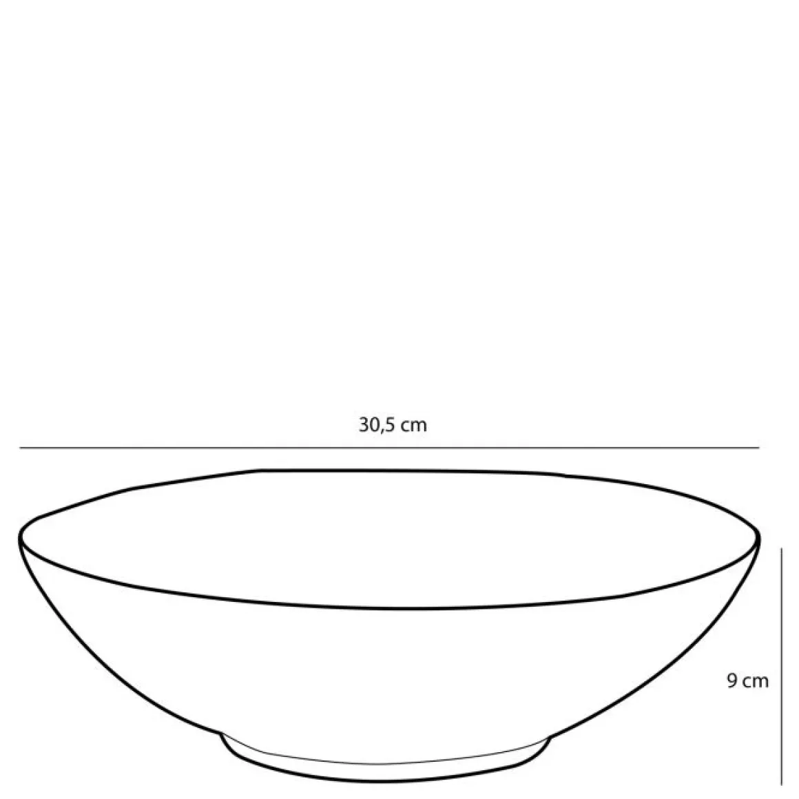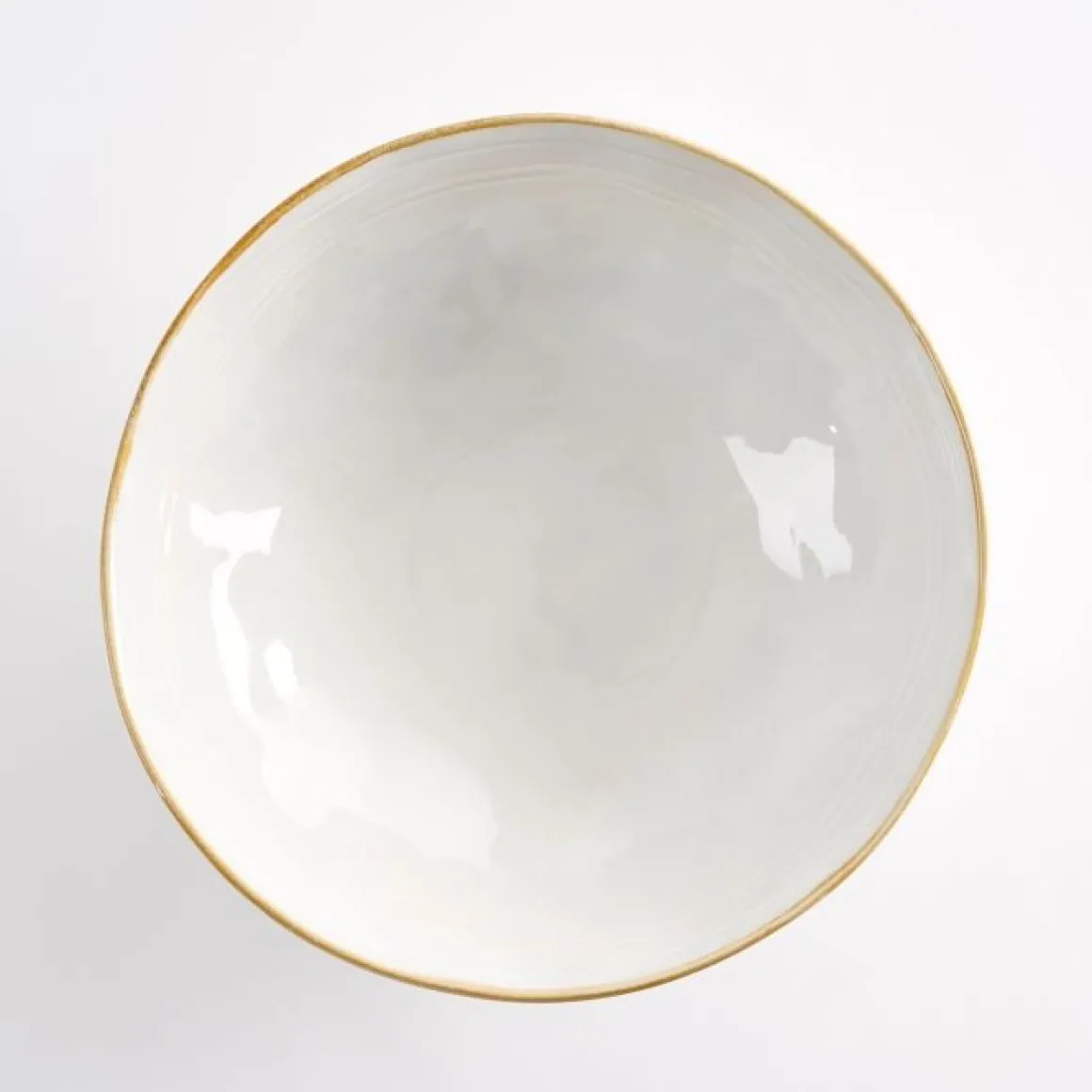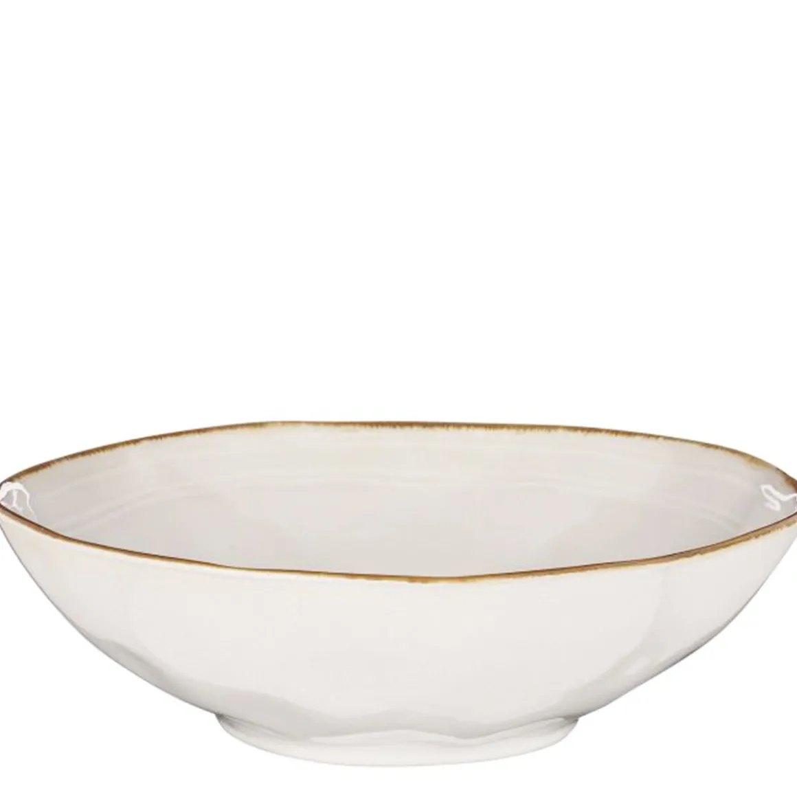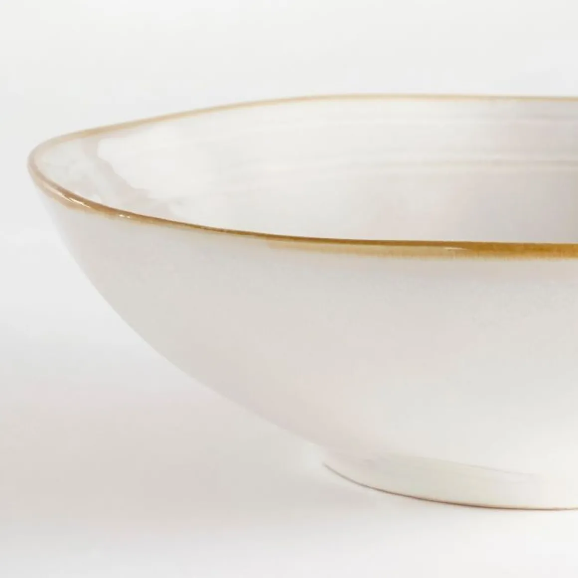 Keramik Schüssel, Tabo, handgefertigt, weiß, Rand braun, 9x30cm, Mica Decorations
