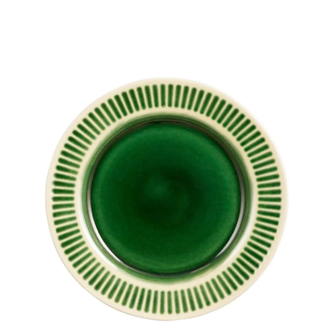 Keramik Teller Elice, Frühstücksteller mit Relief, grün-beige, Ø21,5cm, Mica Decorations