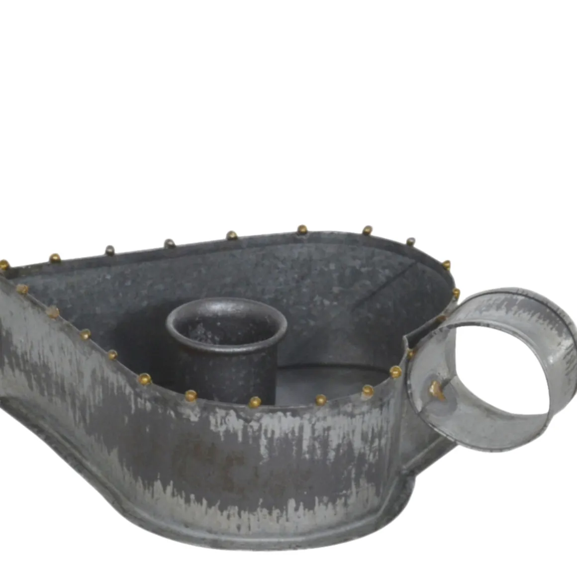 Kerzenhalter Herz used look, Zinkschale für Stabkerzen, Kammerleuchte mit Griff, 15x10cm