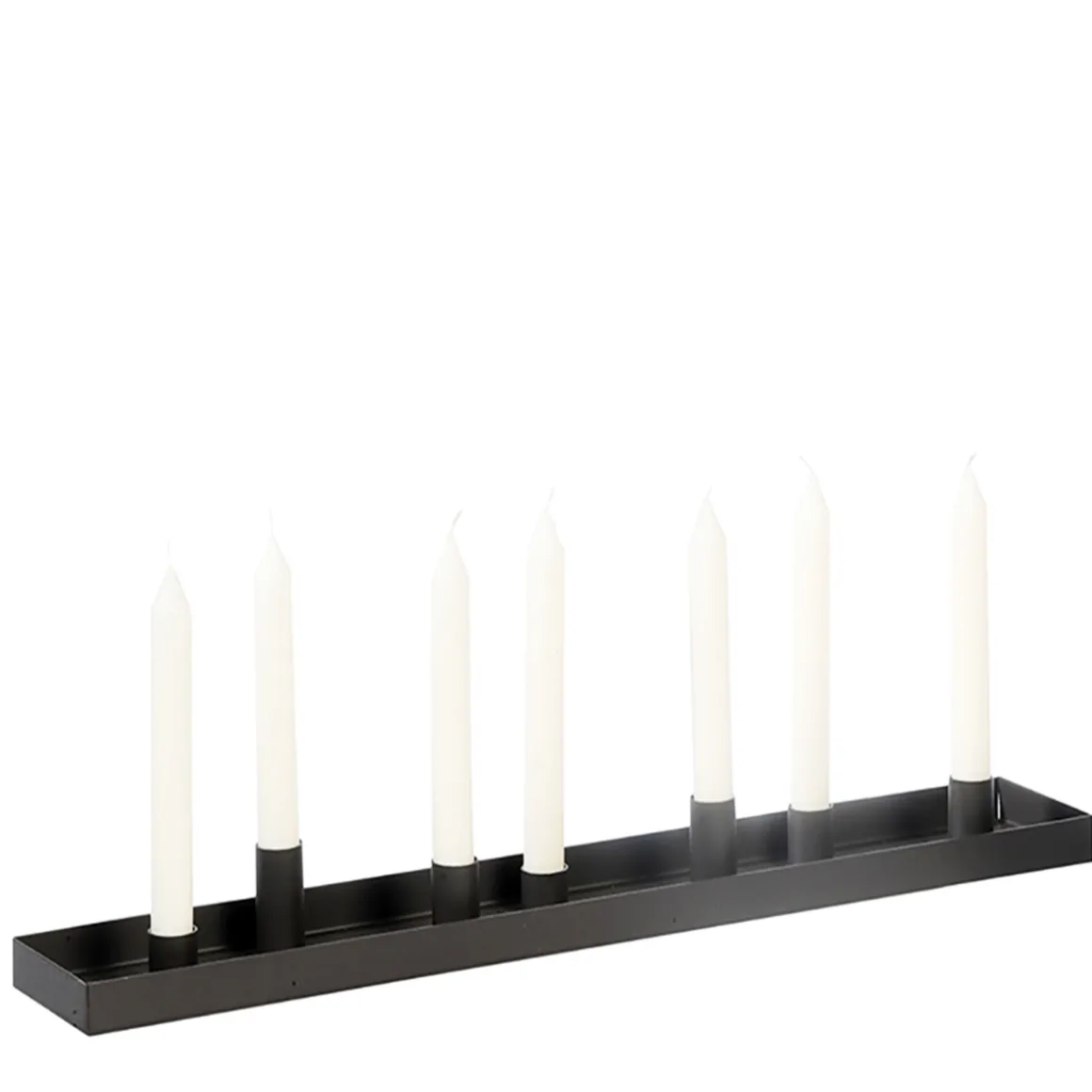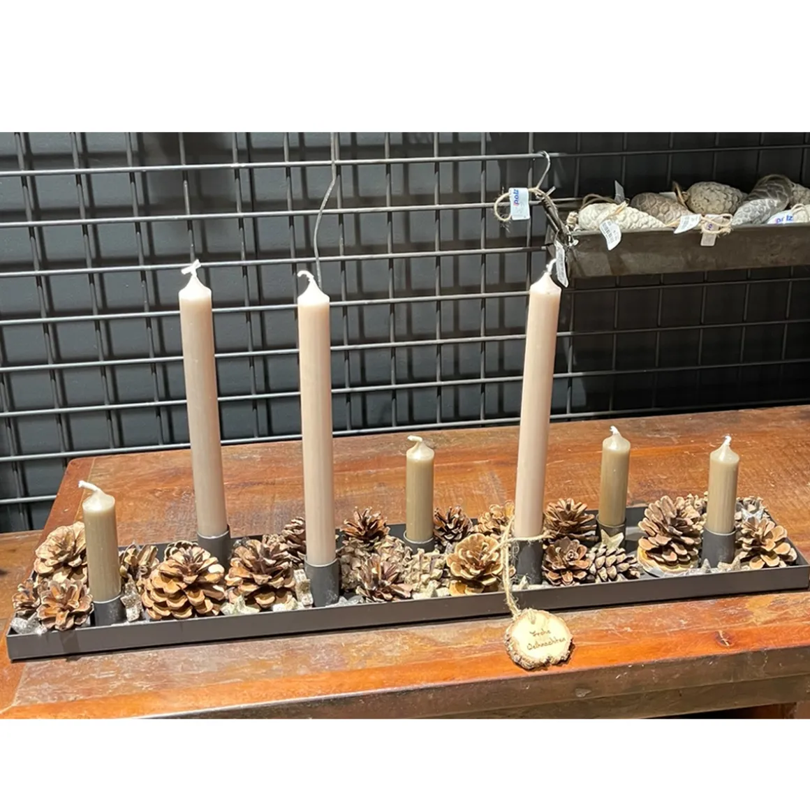 Kerzenhalter Rose mit Schale, längliche Kerzenschale für 7 Stabkerzen, 60cm, WMG Grünberger