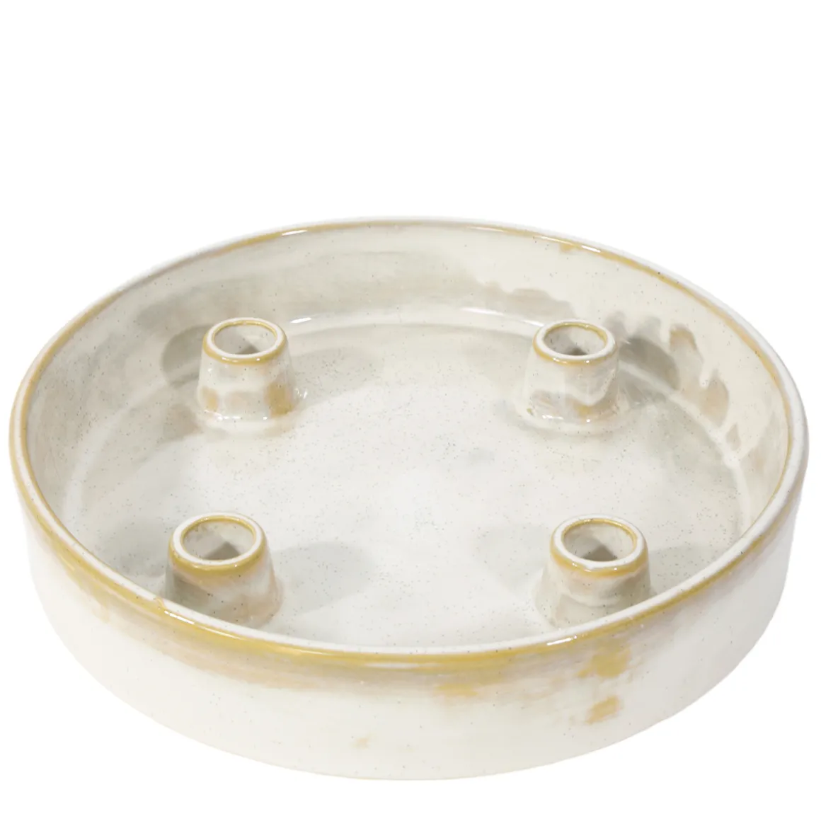 Kerzenhalter Schale rund, Keramikschale mit 4 Stab-Kerzenhalter, cremeweiß