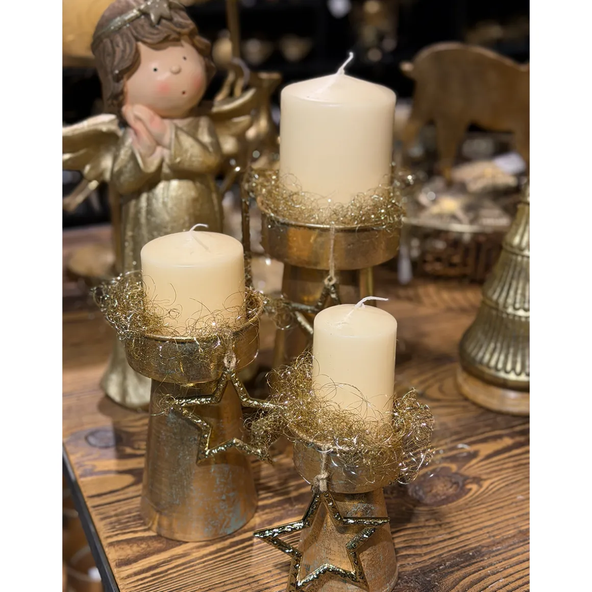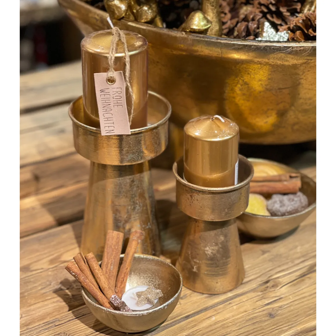 Produktinformationen „Kerzenhalter Weihnachten Antik, Metallkerzenhalter antik gold used look, 14cm“