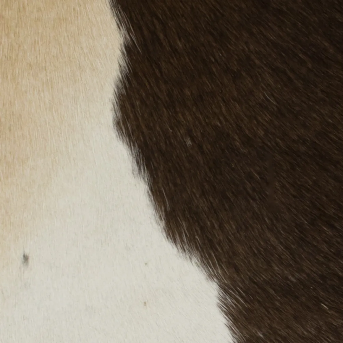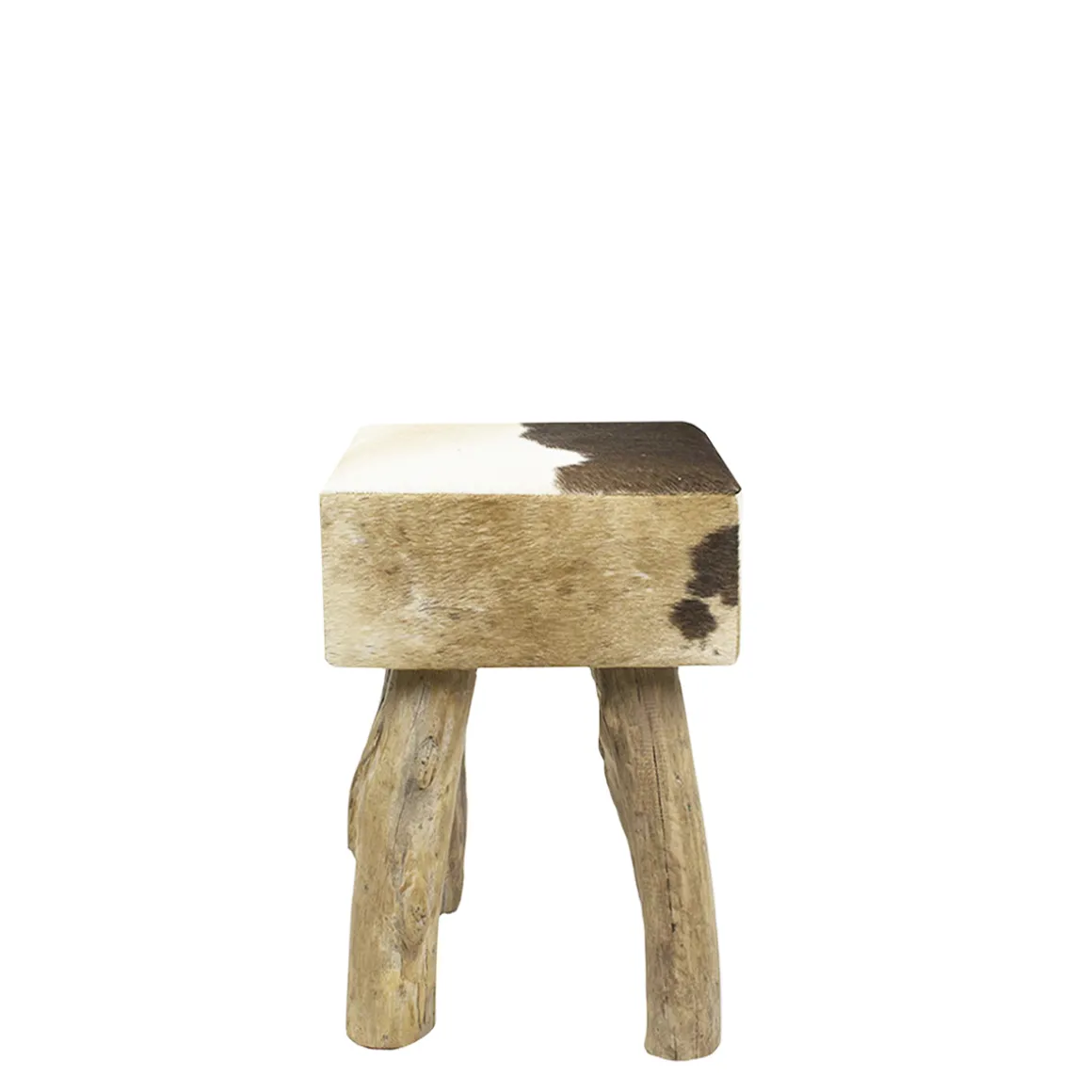 Kuhfell Hocker quadratisch, Fellhocker auf Holzbeine, braun-weiß, 45cm, Mars & More