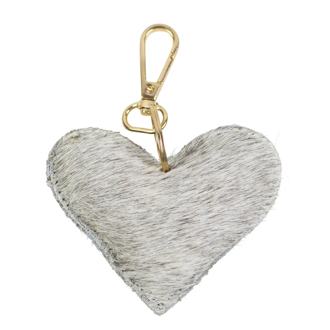 Kuhfell Schlüsselanhänger Herz, Fellherz grau-weiß, 9x8cm, Mars & More