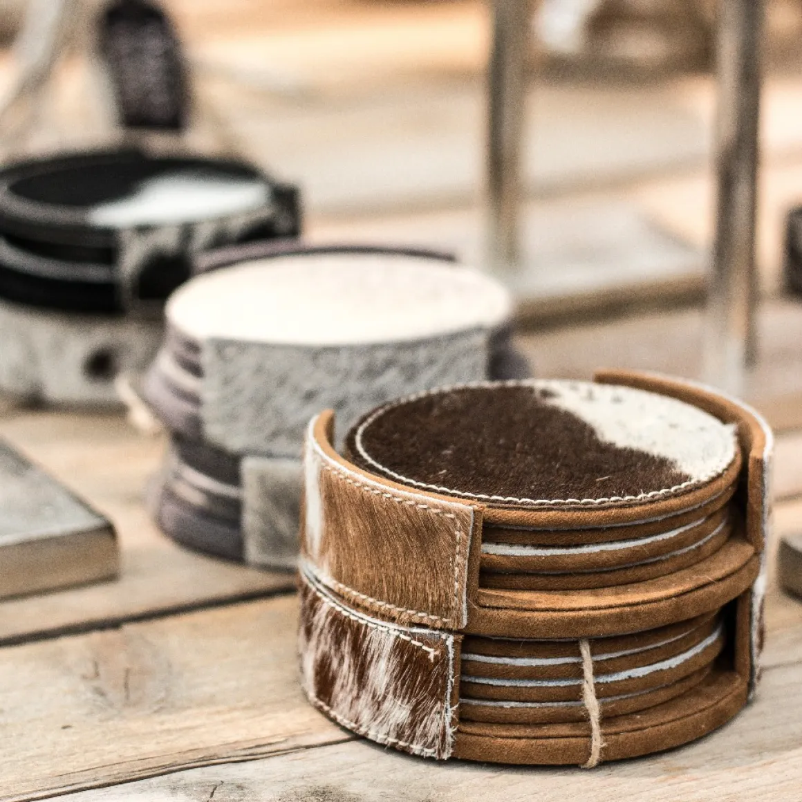 Kuhfell Untersetzer rund grau, Ø10cm, 4St/Pack, Mars & More