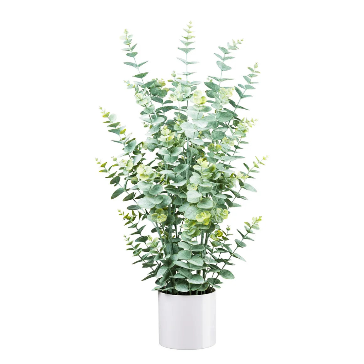 Kunstpflanze Eucalyptus getopft grün, Eucalyptus im weißen Melamintopf, 95cm
