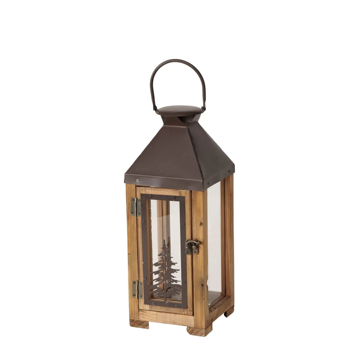 Laterne Finnley, Holzlaterne mit Metalldach und Tannenbaum, 40cm, Boltze Home Collections