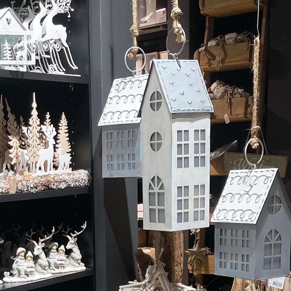 LED Haus, weiß/grau, 70cm, Metall, zum Hängen und Stellen