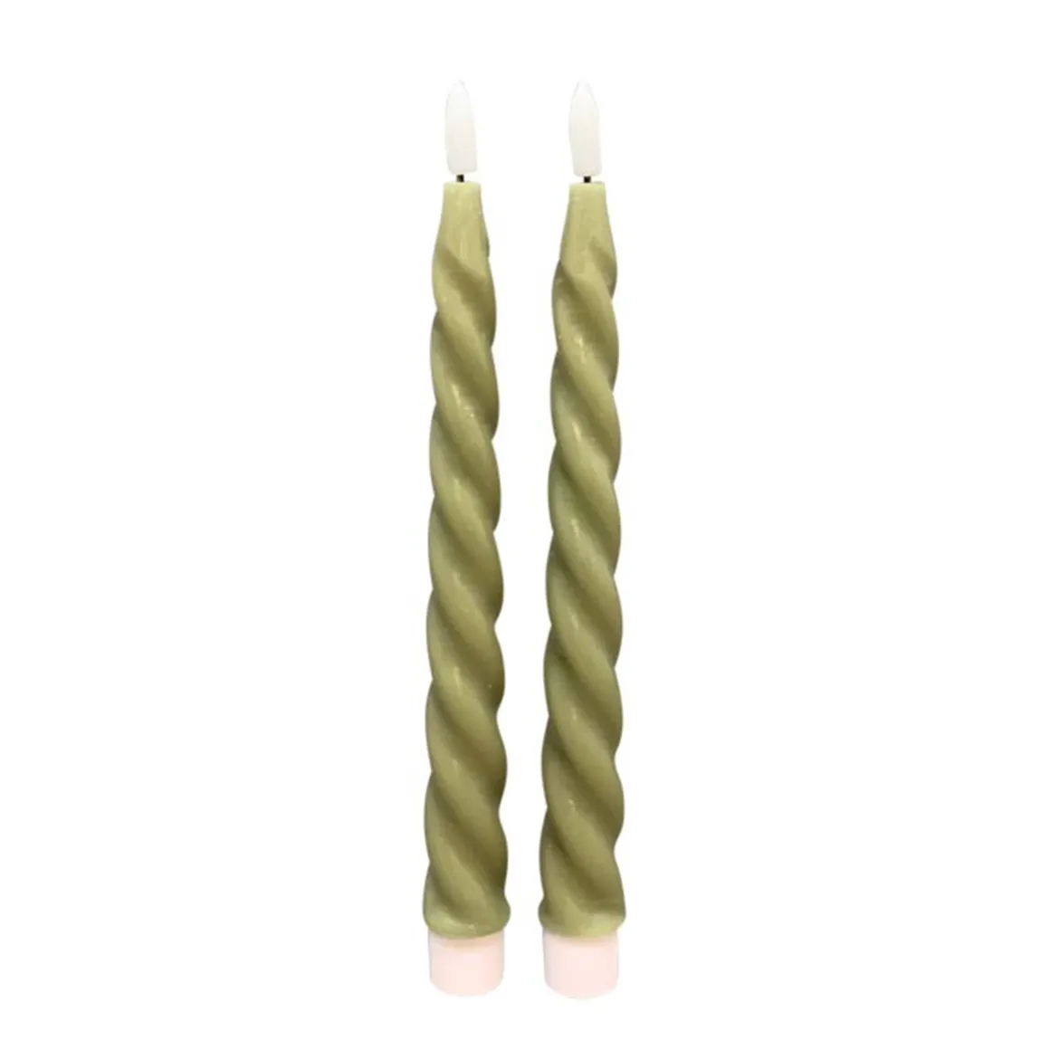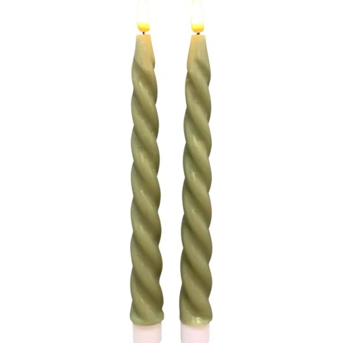 LED Stabkerze Lumiere olivegrün, Wachskerze gedreht, Timerfunktion, Set/2