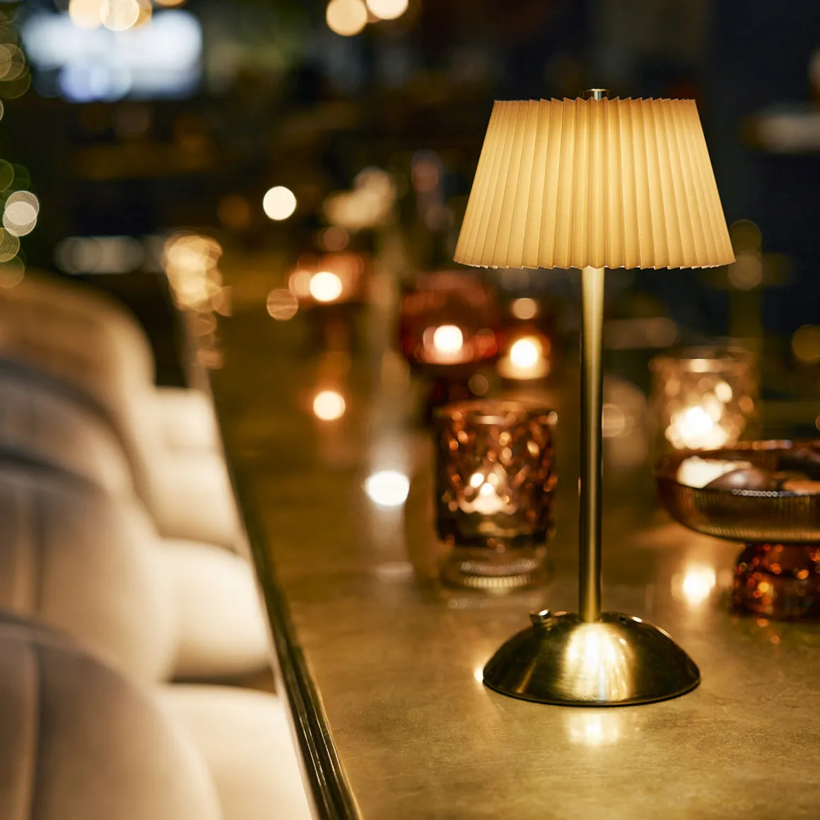 Produktinformationen „LED Tischlampe Faltenoptik, Creme-Gold, wiederaufladbar, dimmbar, 30 cm“