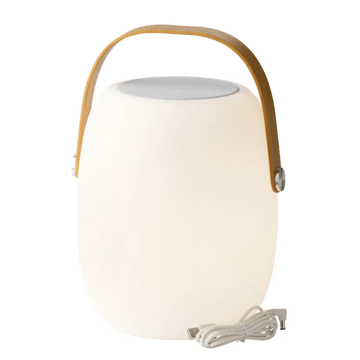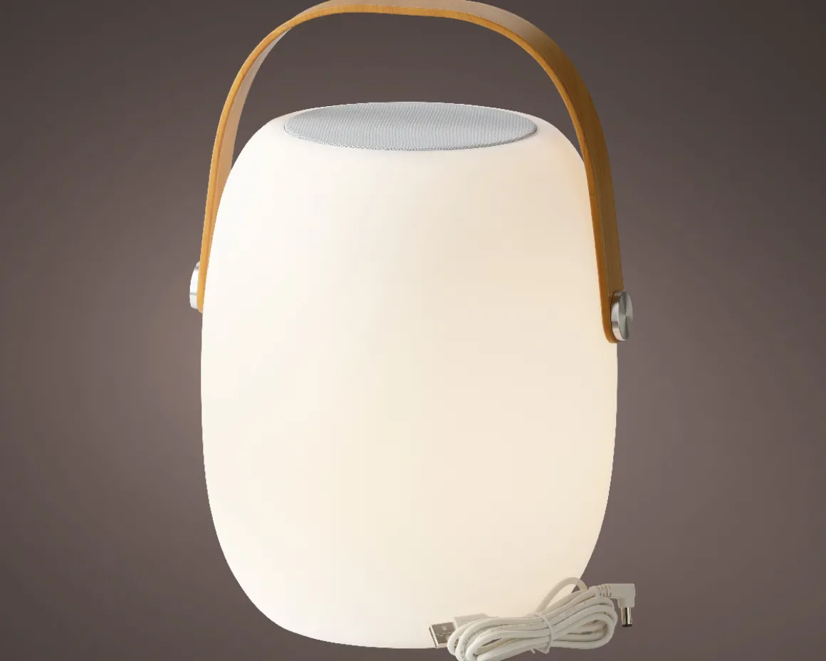 LED Tischleuchte mit Lautsprecher, Gartenlicht aufladbar, warmes weiß, outdoorgeeignet, 21x32cm