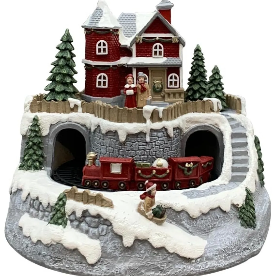 LED Winterlandschaft Noel, Haus und fahrende Eisenbahn, mit Musik und Licht, 20x20x17cm