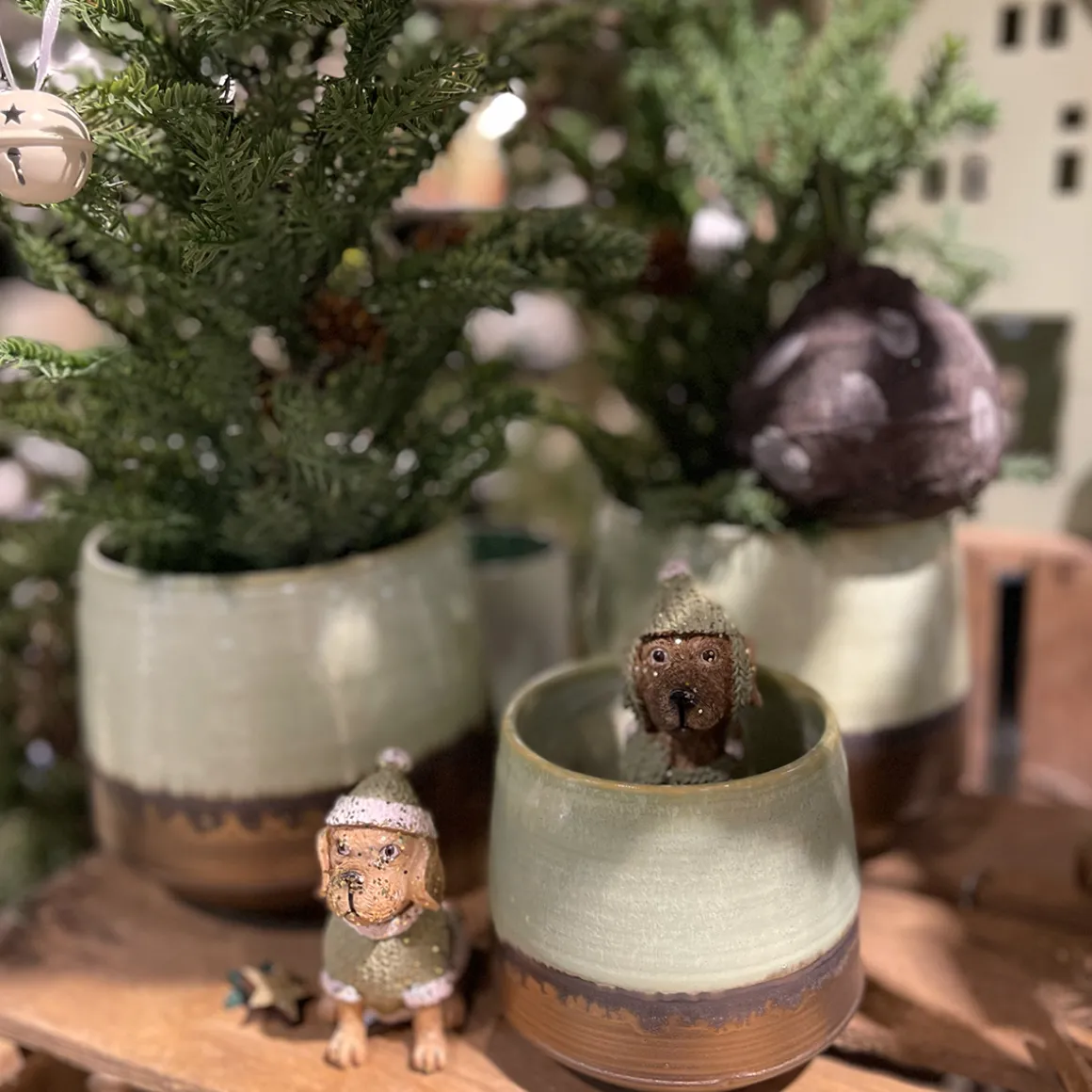 Pflanztopf Toulouse, Übertopf aus Keramik, grün-braun, 11x10cm