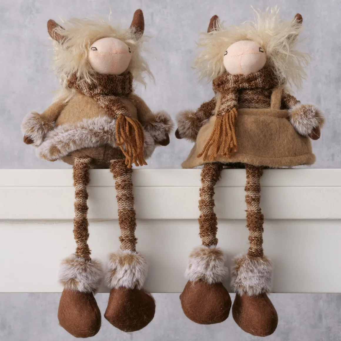Plüsch Hochlandrind Buffy, Kantenhocker, kleines braunes Büffelmädchen mit Schlackerbeine, Boltze Home Collection