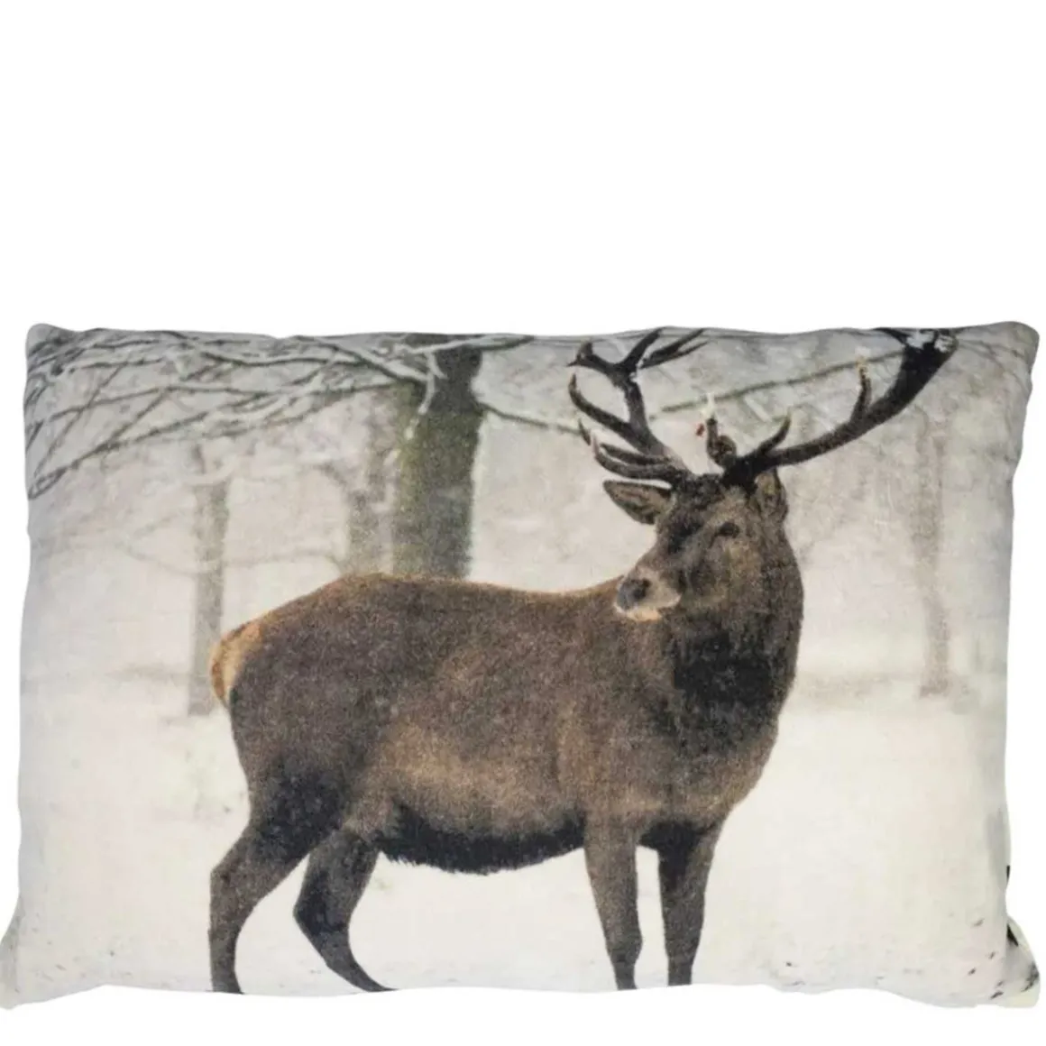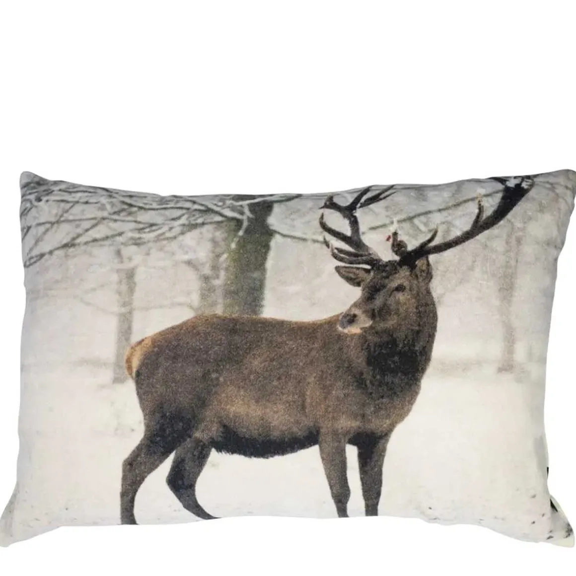 Samt Kissen Hirsch, Hirsch im Schnee, braun-weiß, 40x60cm, Mars & More