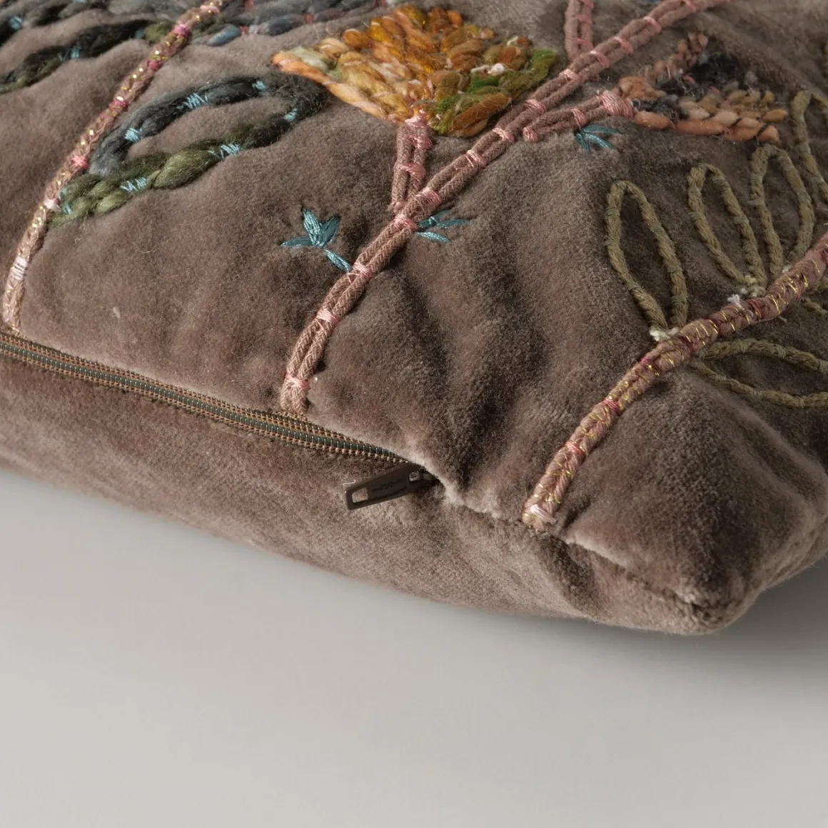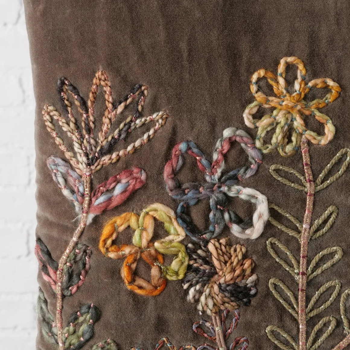 Produktinformationen „Samt Kissen Steffy, Blumenkissen bestickt, olivgrün, 45x45cm, Boltze Home Collections“