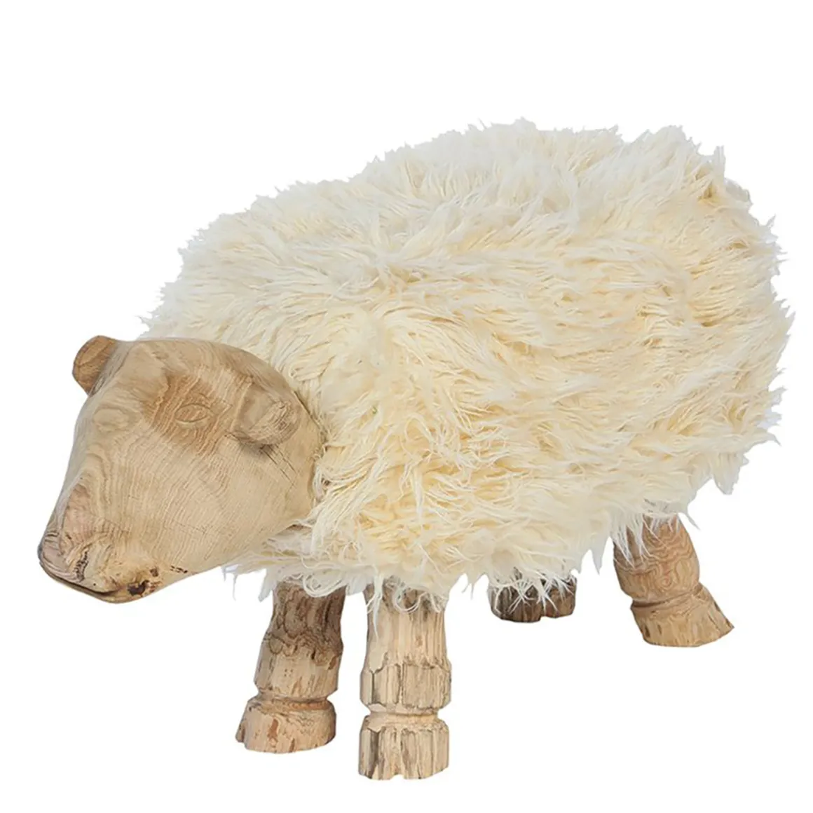 Schaffellhocker Berta, Holzhocker Schaf aus Naturholz und Schafwolle, 42x75cm, WMG Grünberger