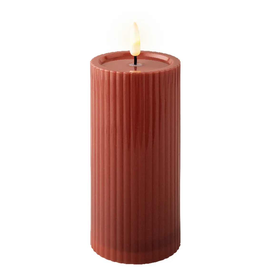 Solar Kerze ziegel, Kerze mit Rillen,15cm, Lumineo