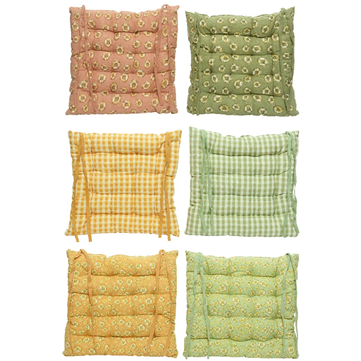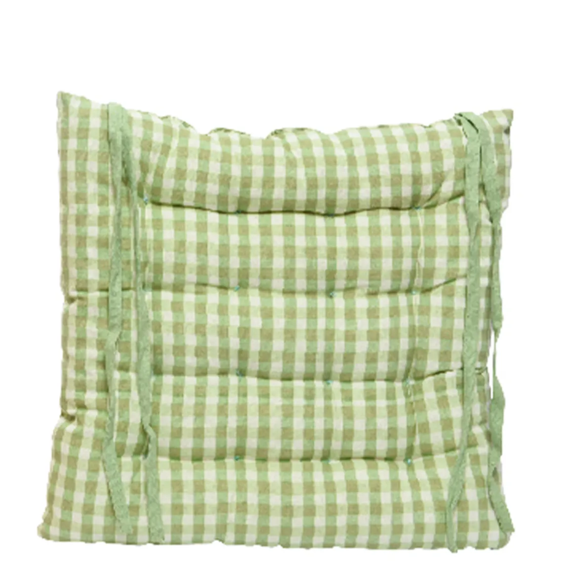 Stuhlkissen Karo grün, mit Bändern, 40x40cm, Baumwolle