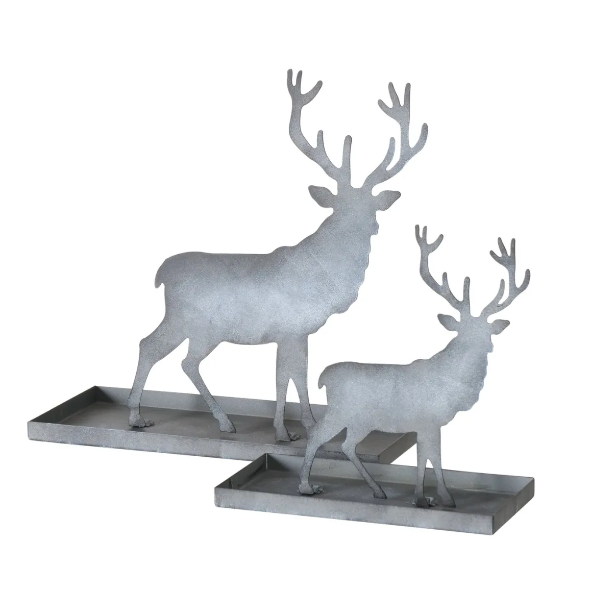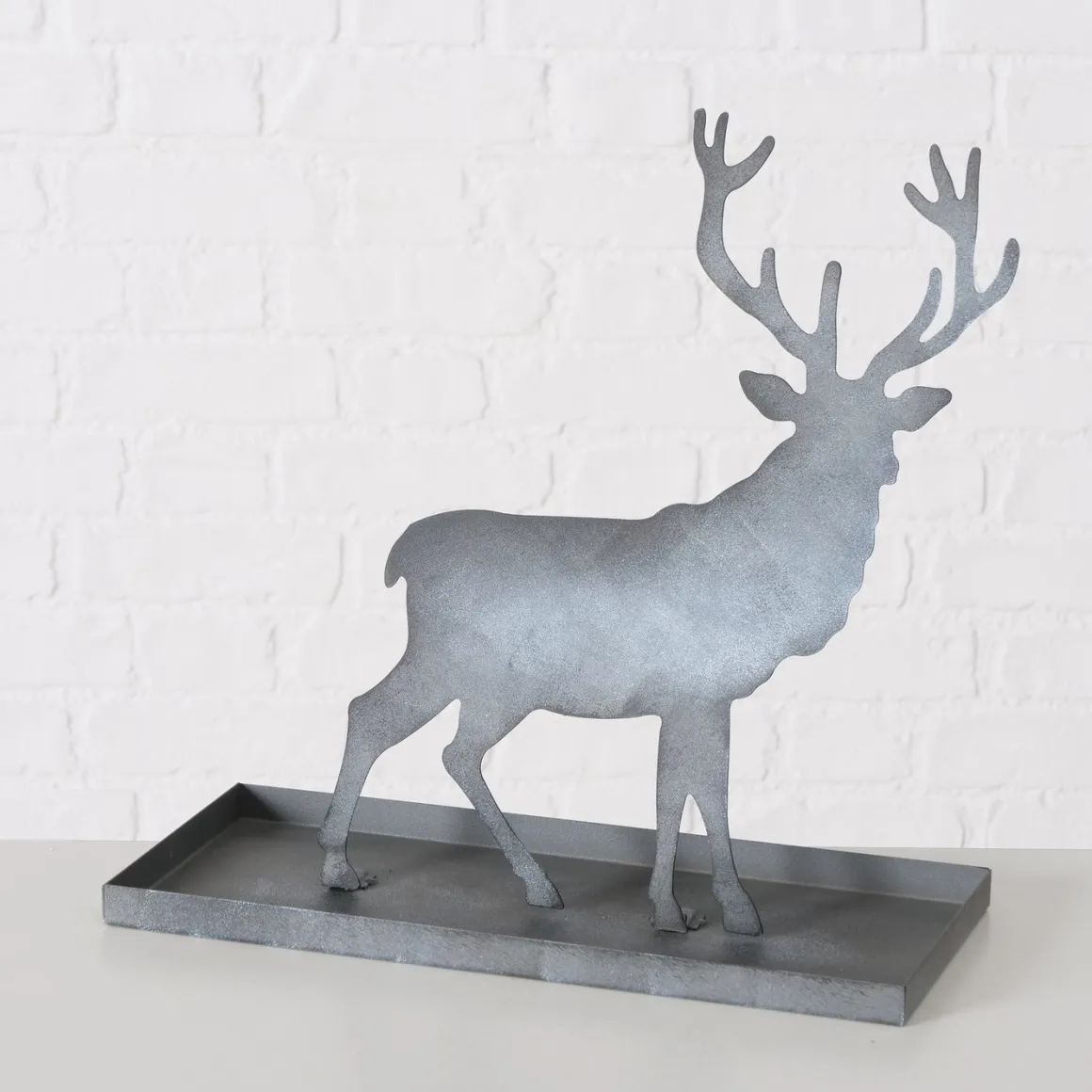 Tablett Hirsch Luga, Metalltablett mit Hirsch abnehmbar, grau, 34x35cm