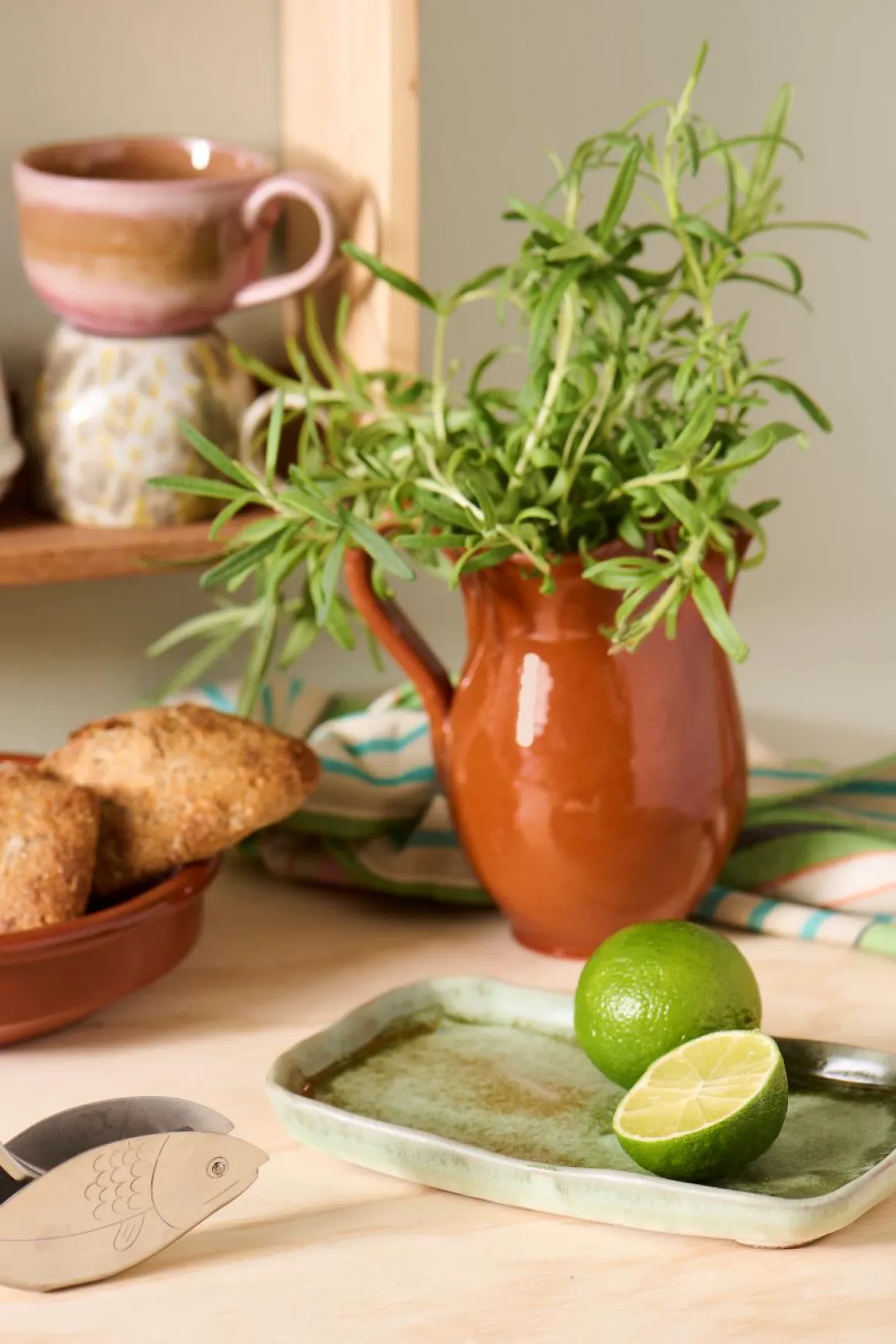 Dieses längliche Steinguttablett bringt eine wunderbar natürliche und leicht rustikale Note auf den Tisch.