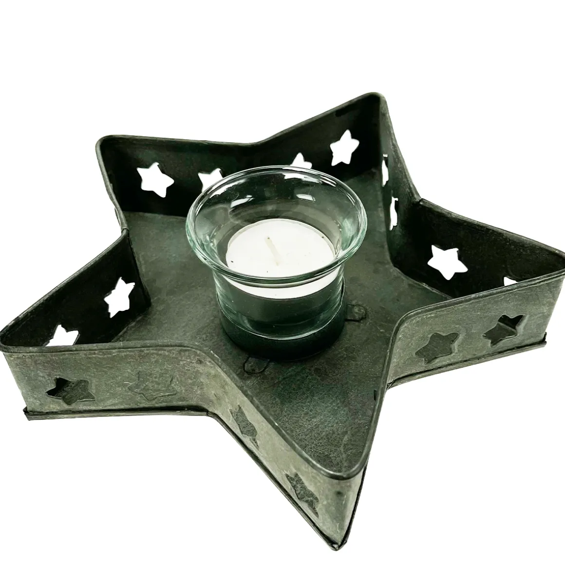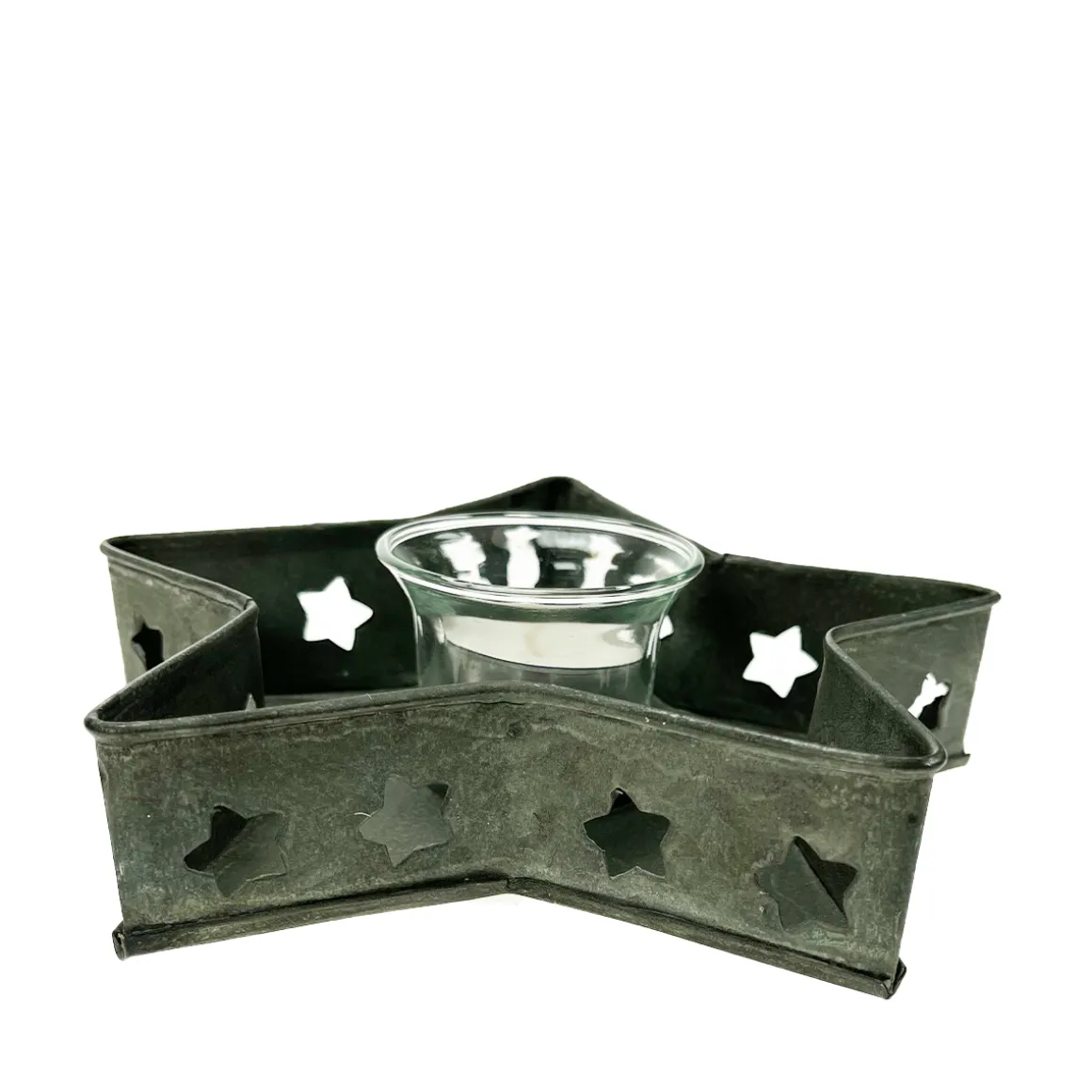 Dieser Teelichthalter in Sternform bringt rustikalen Charme und warmes Kerzenlicht in die Winterzeit.