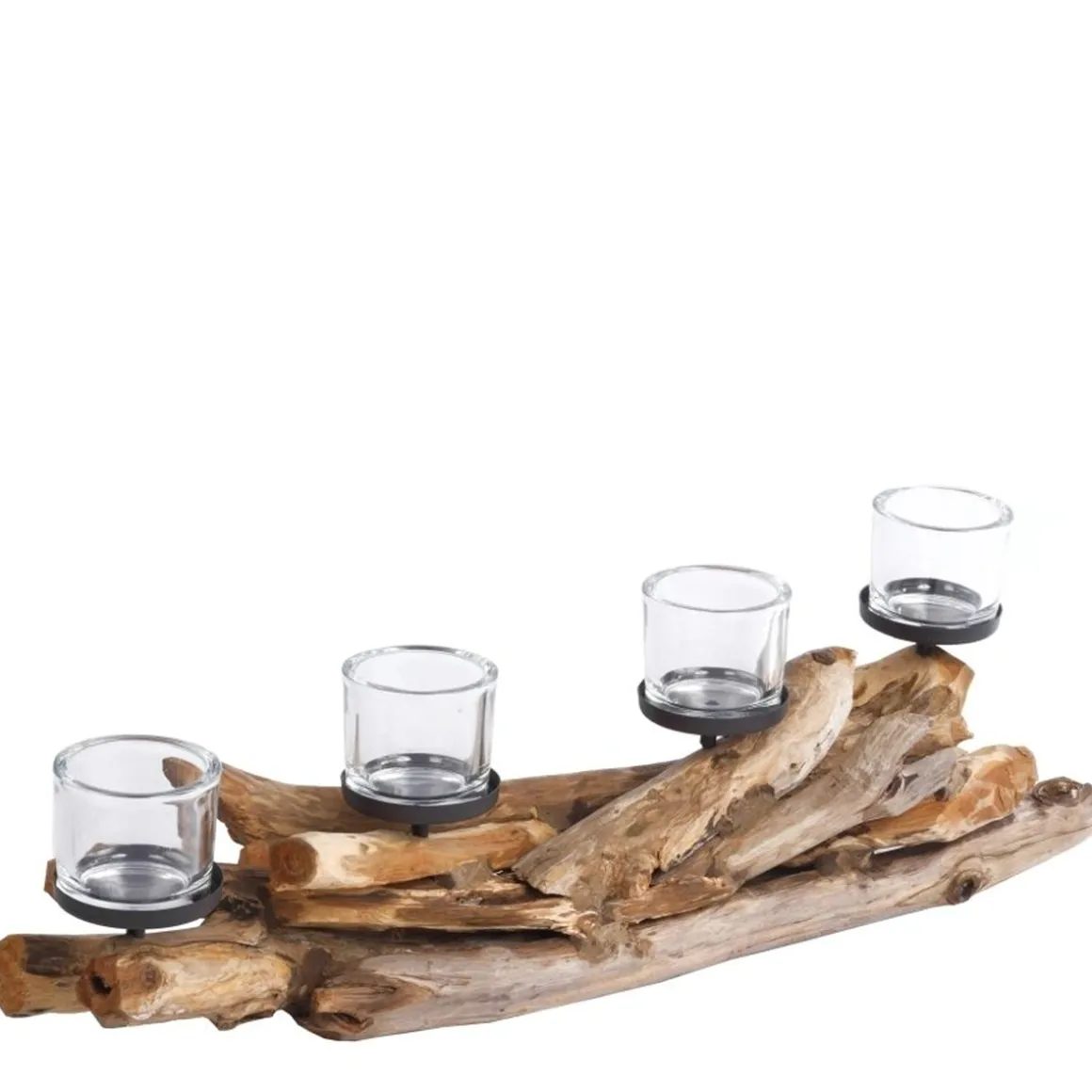 Treibholz Windlicht Erosi Tanduk, Naturholz Windlicht mit 4 Kerzengläser, 90cm, WMG Grünberger