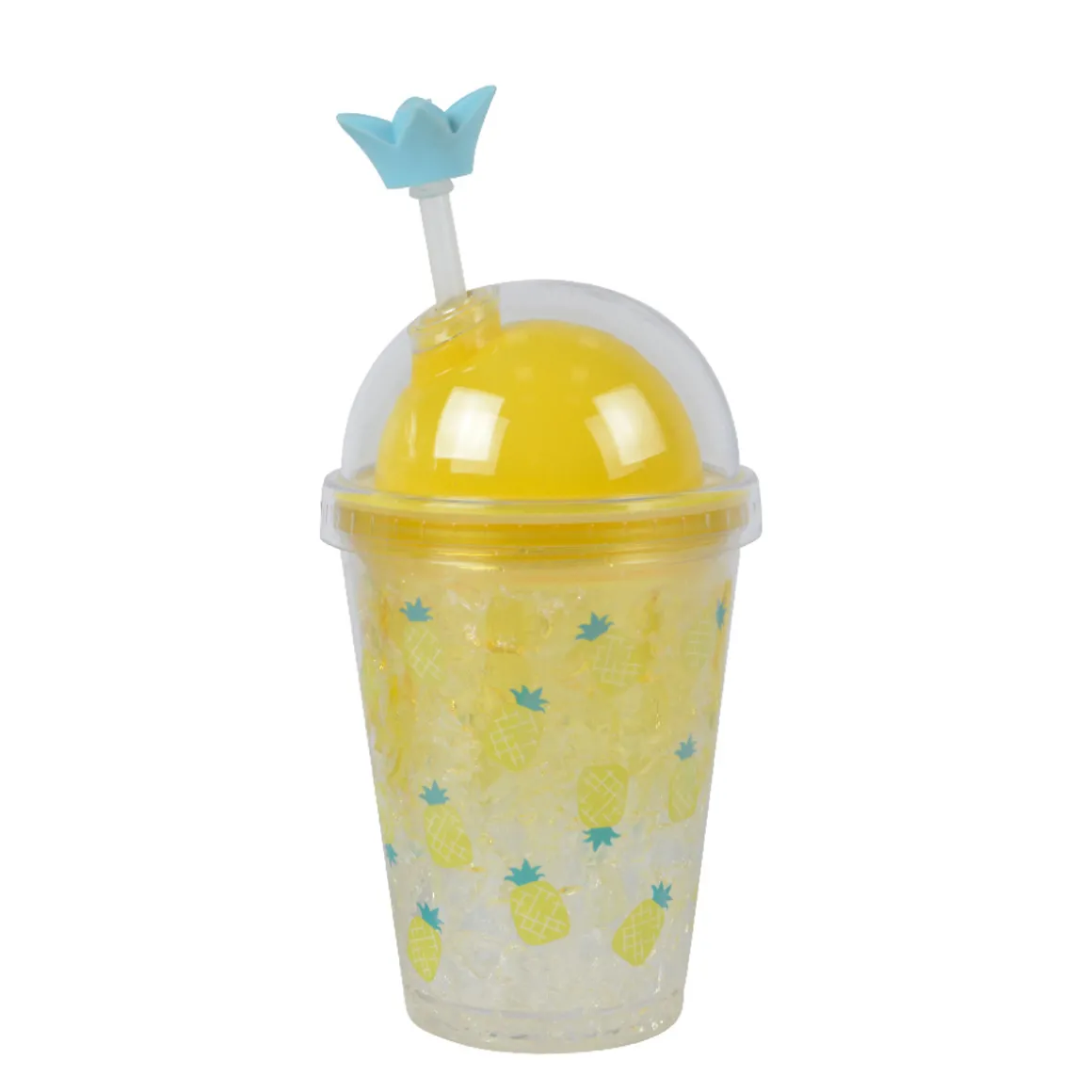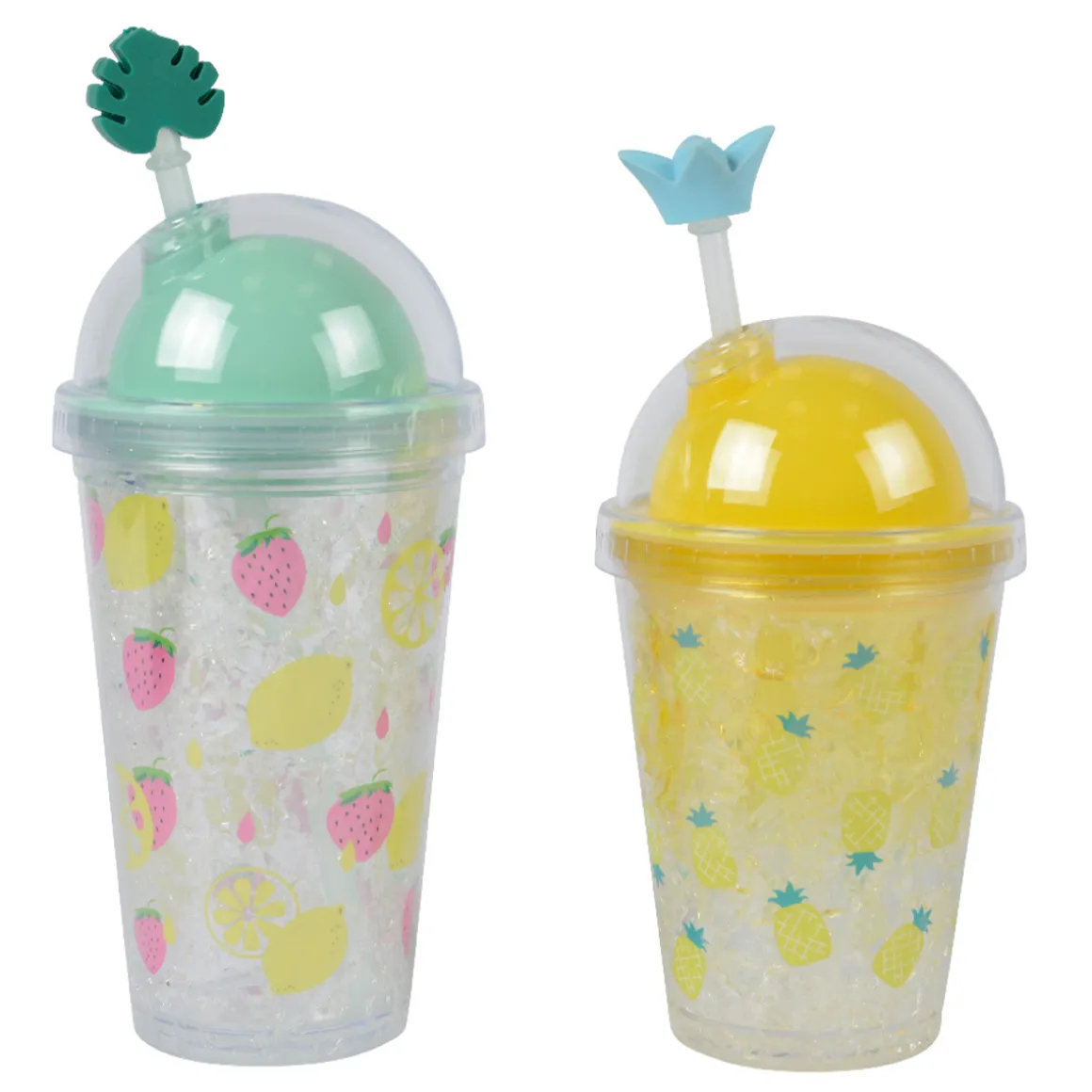 Trinkbecher Space gelb, Erdbeeren und Zitronen, 17x10cm, Kunststoff