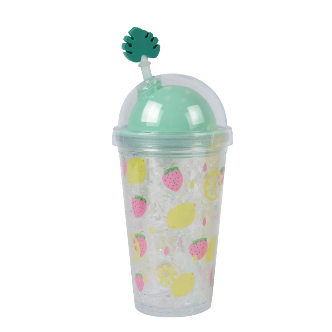 Trinkbecher Space türkis, Erdbeeren und Zitronen, 17x10cm, Kunststoff