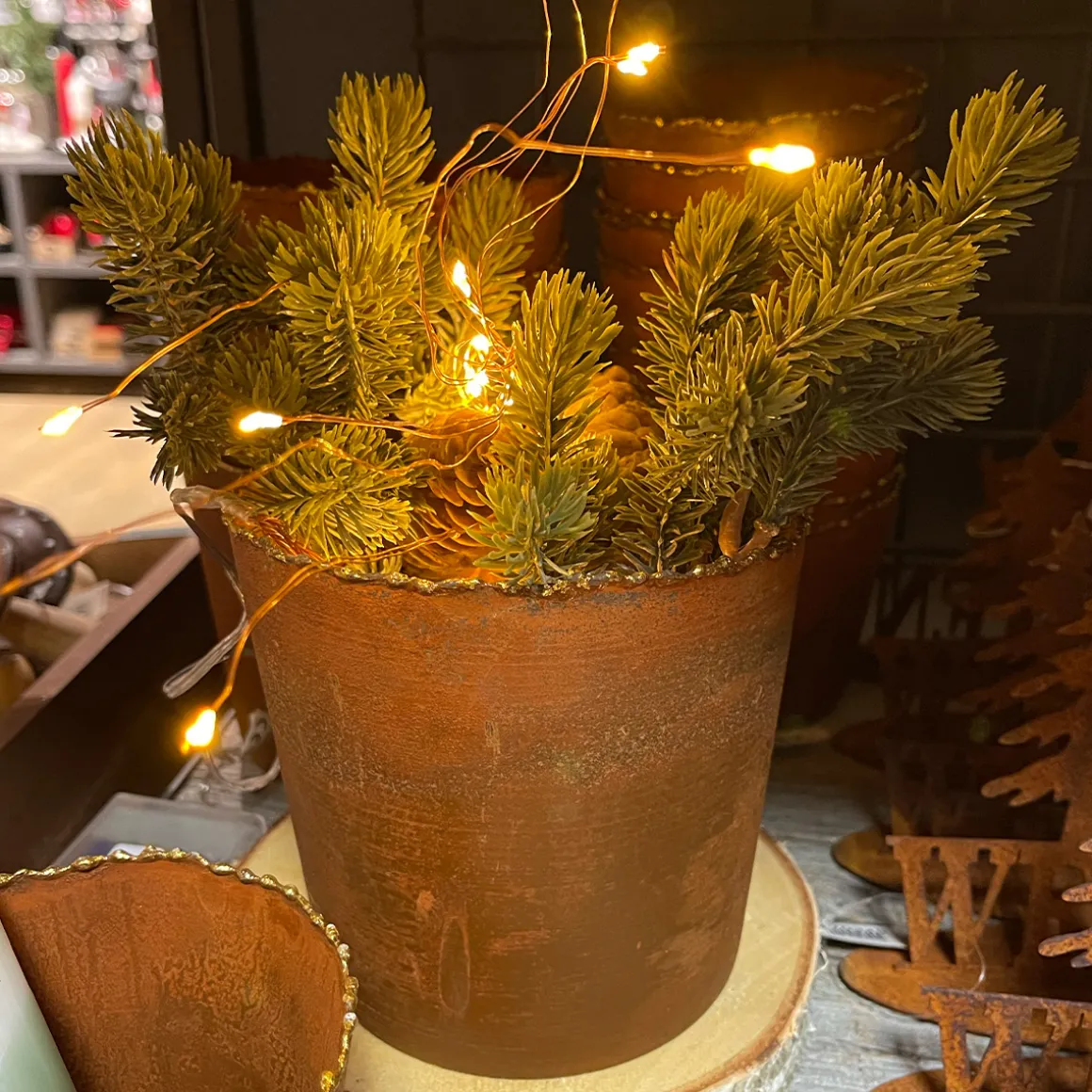 Übertopf Rost mit Goldrand, Pflanztopf Edelrost used look , 12x13cm