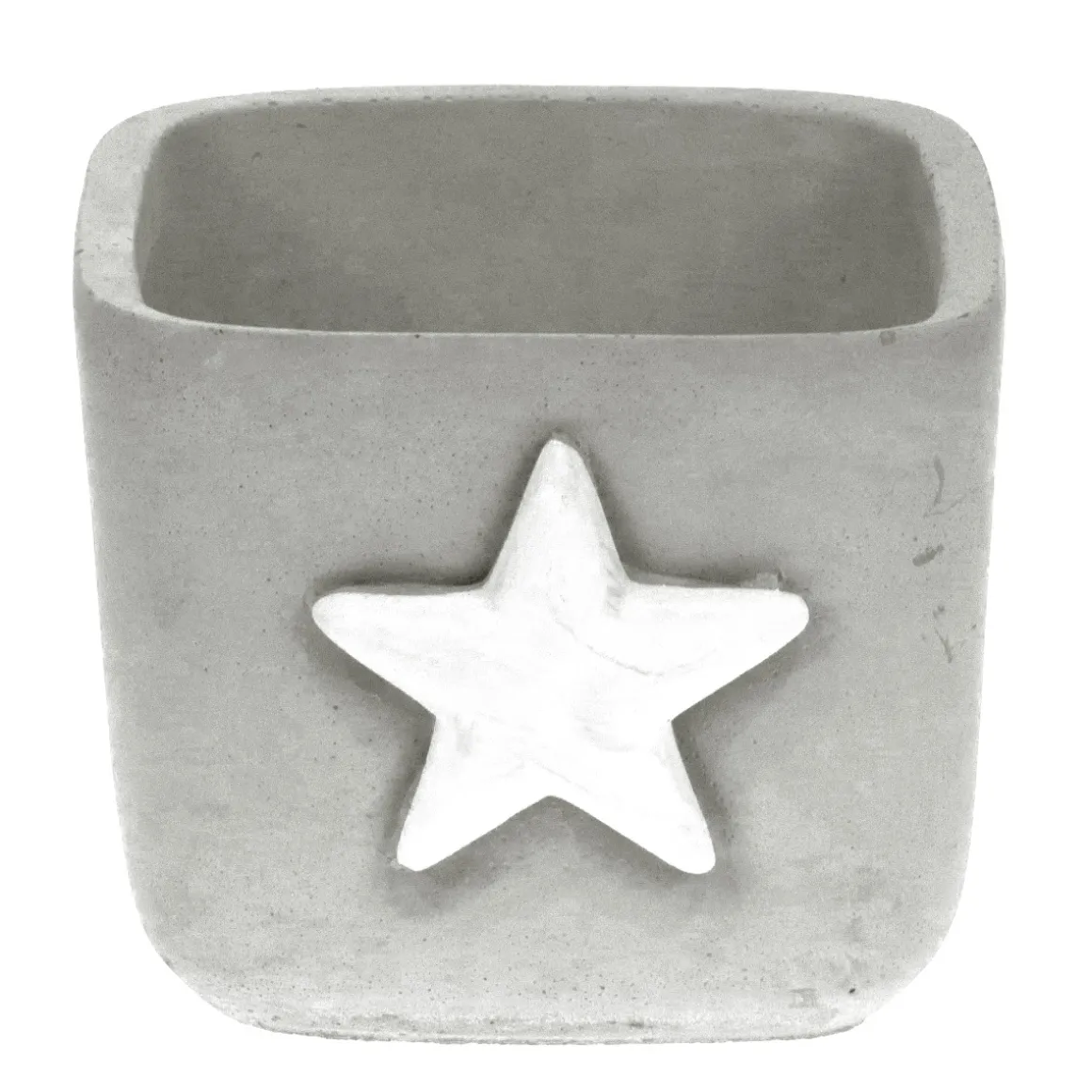 Übertopf Stern, betonoptik, grau-weiß, unfinish, 15x14cm, Beton