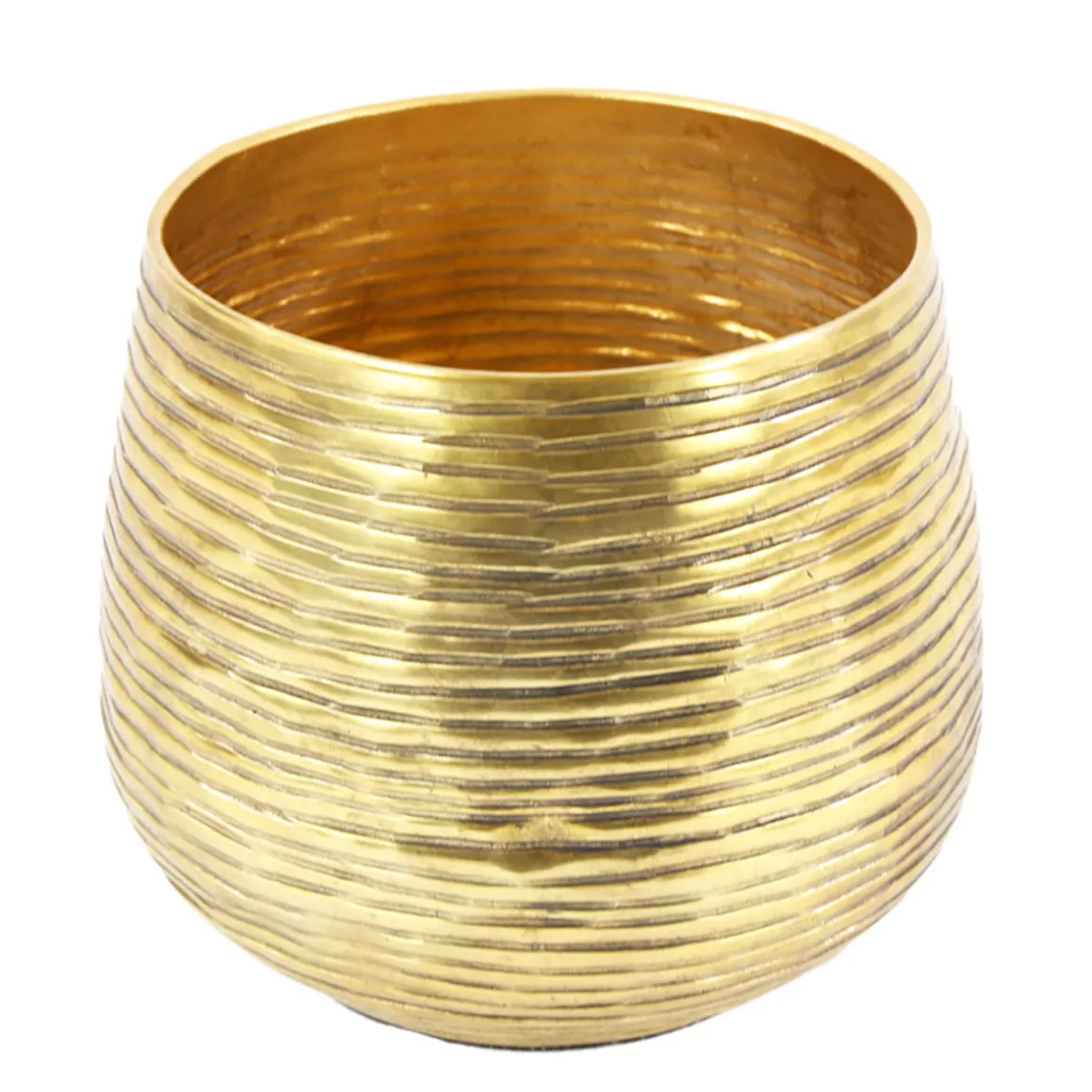 Übertopf Weihnachten, Pflanztopf mit Rillen, gold, 14x12cm, Metall
