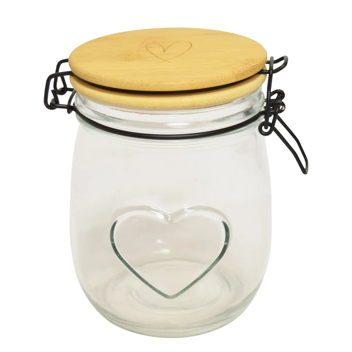 Vorratsglas Herz, Schnappglas mit Bambusdeckel und Herz, 11x14cm
